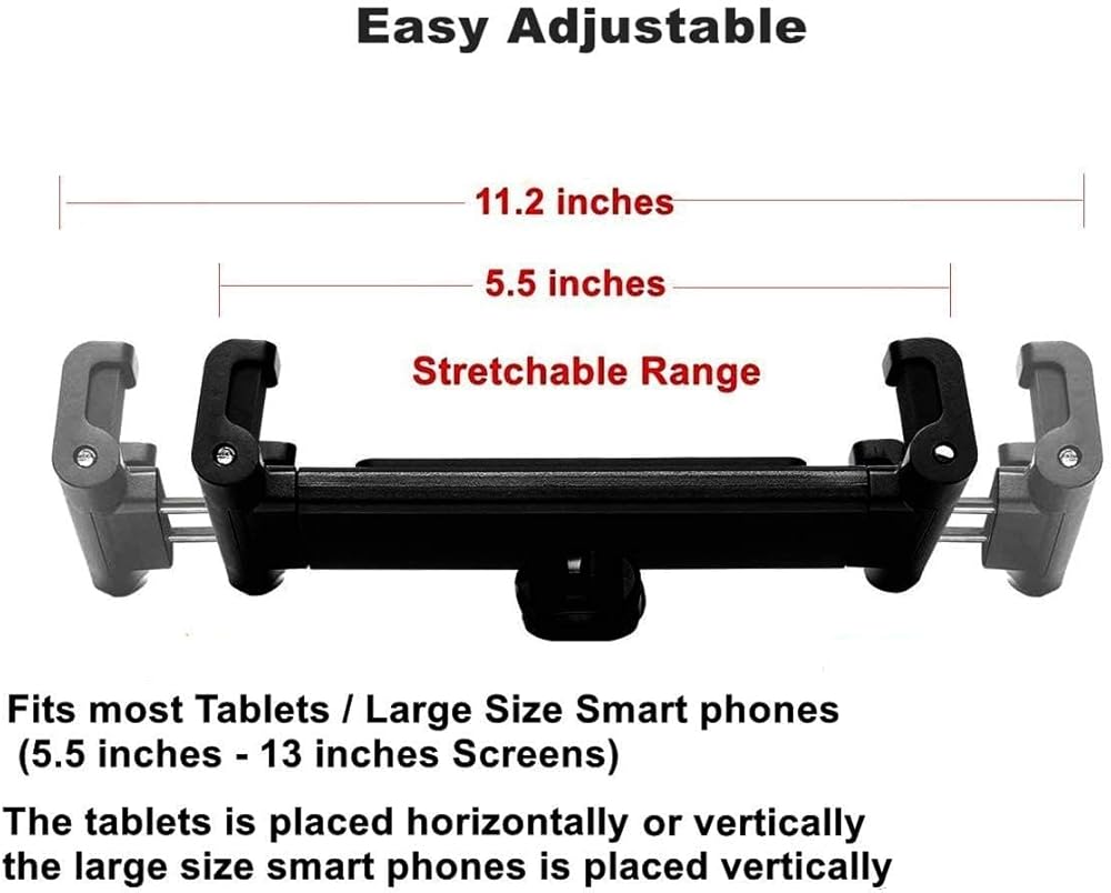 • [توافق واسع:] نطاق عرض حامل مشبك التابلت القابل للتمدد: 5.5 بوصة - 13 بوصة، مناسب لجميع أجهزة التابلت / الهواتف الذكية الشهيرة، مثل: متوافق مع ايباد اير/ميني/برو، موبايل 14 13 12 11 برو ماكس ميني اكس اس اكس ار اكس 8 بلس، متوافق مع جالكسي تاب اس اي نوت 9 اس 8 اس 9 اس 10 /نيكزس/بيكسل وأكثر من ذلك (تصميم سهل الاستخدام: يمكن أن يناسب جهازك مع معظم حافظات الحماية البسيطة، ولكنه لا يناسب الحافظة السميكة جدًا، فهو يستوعب سمك 0.7 انش للتابلت/الهاتف مع حافظة)