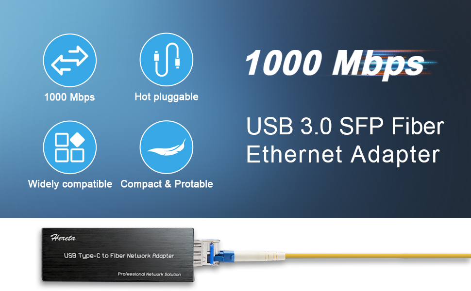 محول شبكة جيجابت إيثرنت من Hereta Mini USB3.0 SFP، بطاقة واجهة شبكة ألياف جيجابت، يضمن معدل نقل عالي الأداء ودعم الأمان لنظام التشغيل Mac OS/Windows/Linux