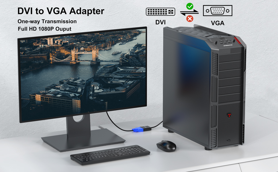 【شاشة FHD لا تشوبها شائبة】يعرض محول dvi إلى vga صورة عالية الدقة بدقة 1080P@60 هرتز بدون وميض. دعم دقة تصل إلى 1920x1200@60 هرتز.