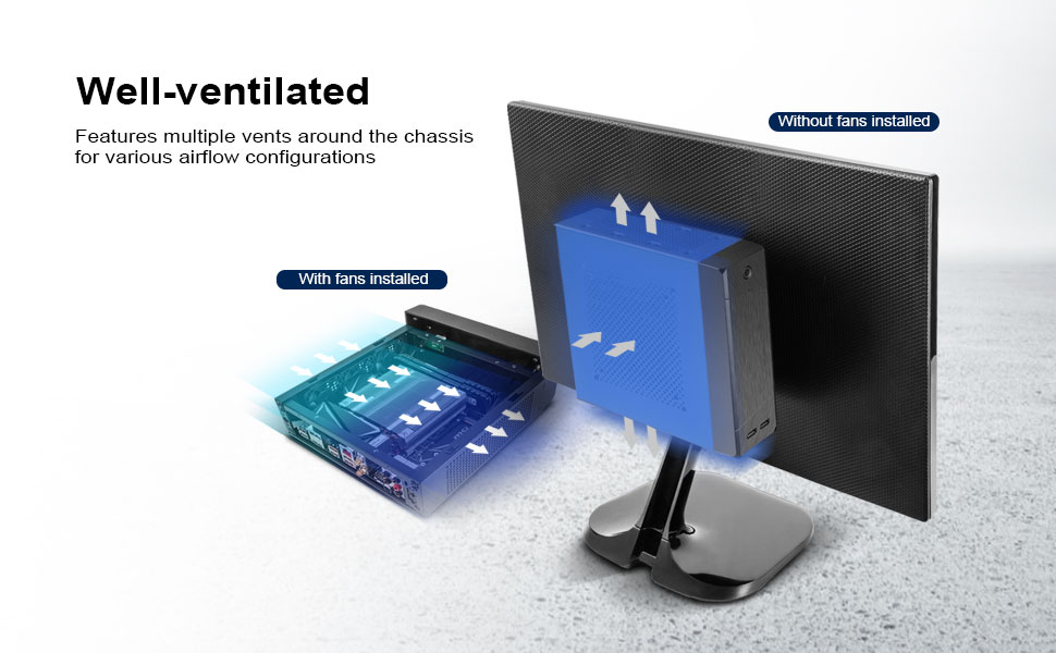 • يتميز بفتحات تهوية متعددة حول الهيكل لتكوينات تدفق الهواء المختلفة