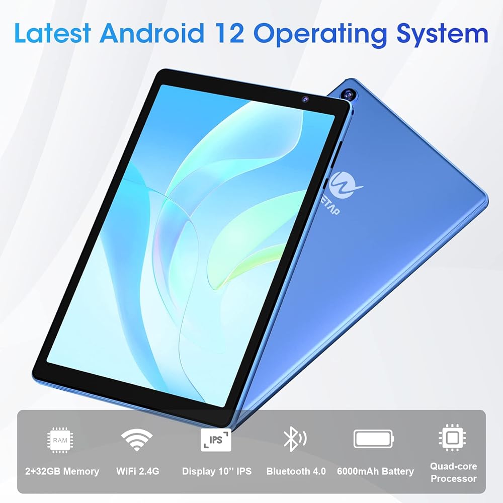 【معتمد من جي ام اس ومتجر جوجل بلاي】تابلت وي تاب اندرويد 12 مجهز بذاكرة رام 2 جيجابايت وذاكرة روم 32 جيجابايت وما يصل إلى 128 جيجابايت من التخزين القابل للتوسيع. (تحتاج إلى الشراء بنفسك). مع شهادة جي ام اس، يمكنك استخدام وتثبيت التطبيقات من متجر جوجل بلاي مثل نتفليكس وتيك توك ويوتيوب ولاين وتويتر. تلبي احتياجاتك الإلكترونية اليومية. التابلت مجهز بنظام اندرويد 12، مما يعزز الأمان والخصوصية ويحمي البيانات التي تصل إليها تطبيقاتك بشكل أفضل. لا داعي للقلق بشأن تسرب البيانات أو مضايقة المعلومات السيئة.