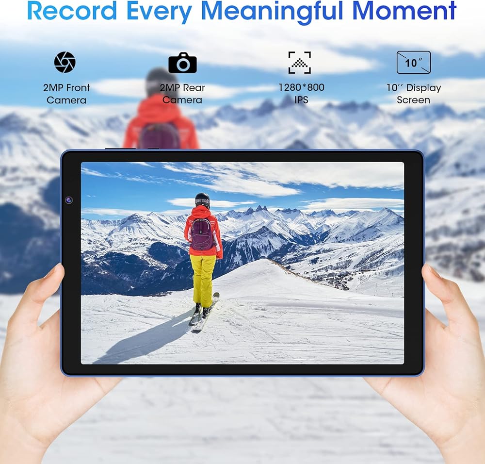 【خفيف الوزن + شاشة LCD IPS + كاميرا مزدوجة】لإظهار المزيد من التفاصيل، يحتوي هذا التابلت على شاشة IPS HD بدقة 1280 × 800، مما يجعل الصورة أكثر حيوية ووضوحًا في اللون. كما أنه يحتوي على ميزات حماية العين مثل سطوع الشاشة القابل للتعديل والوضع الليلي، حتى تتمكن من الاستمتاع بمحتوى مثل الكتب الإلكترونية والأفلام وتصفح الويب وقتما تشاء. لتتمكن من تسجيل كل لحظة، تم تجهيز تابلت ويتاب 10 انش بكاميرا مزدوجة لالتقاط كل لحظة. * يزن التابلت حوالي 458 غرام ويسهل حمله للعمل أو الدراسة أو اللعب.