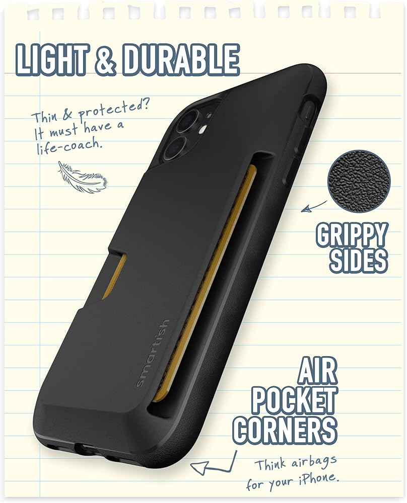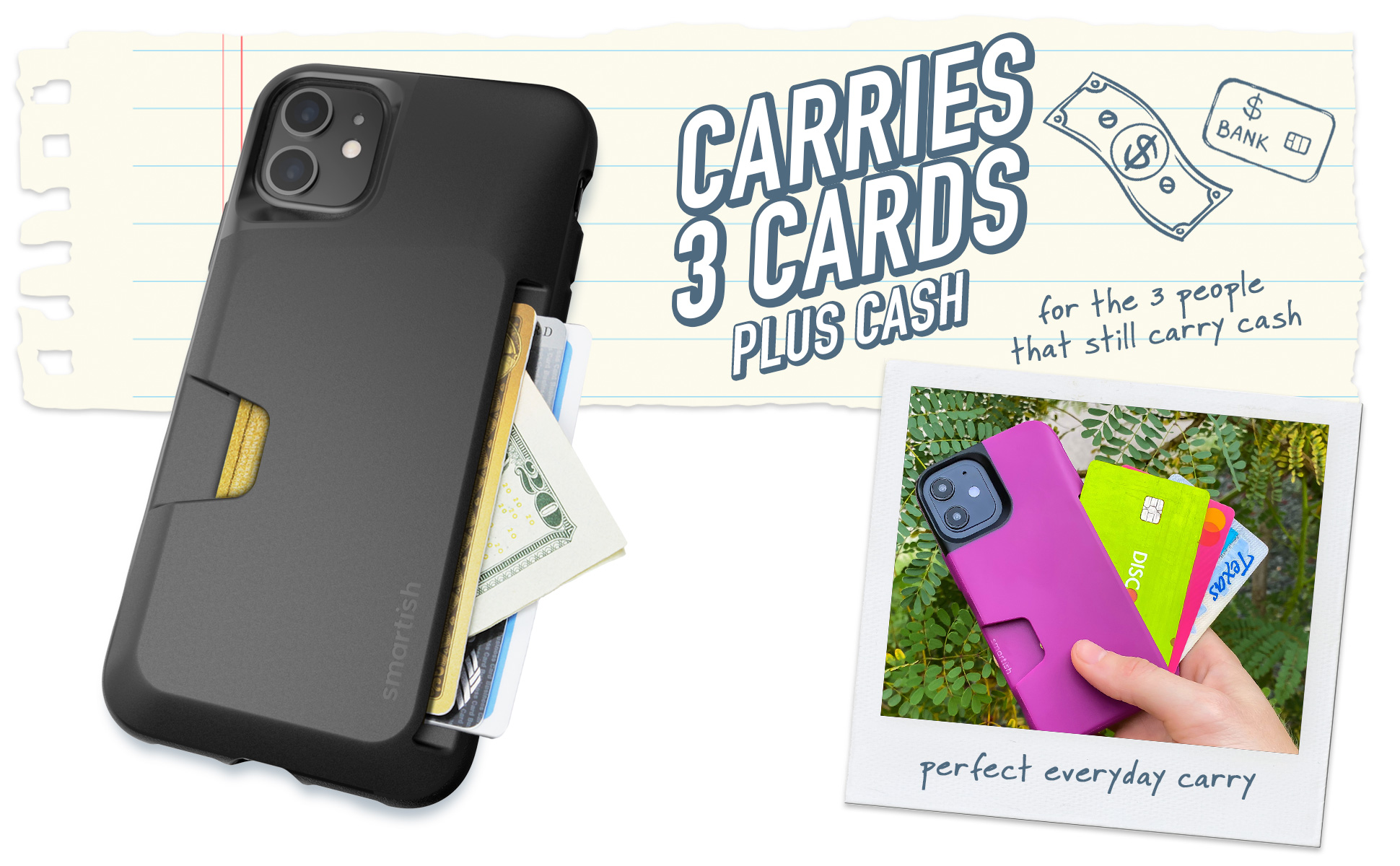 تخلص من المحفظة واصبح نحيفًا مع Wallet Slayer Vol. 1. بطاقة الهوية، وبطاقات الائتمان، والنقود الخاصة بك كلها ملائمة بشكل آمن لهاتفك - كل ما تحتاجه في مكان واحد! "ولكن هل سيحمي هاتفي؟" هيا، هل التاكو أفضل مع السالسا؟ مع هيكل خفيف للغاية ومتين، فهو رقيق ومحمي. يتميز بجوانب قابلة للإمساك وجيوب هوائية في الزوايا (فكر في الوسائد الهوائية لجهاز iPhone الخاص بك)، فهو حقًا يركّز السوق على الحماية والنكات المبتذلة. احصل على أمتعتك اليومية تحت السيطرة ودع Wallet Slayer Vol. 1 تبسيط حياتك.
