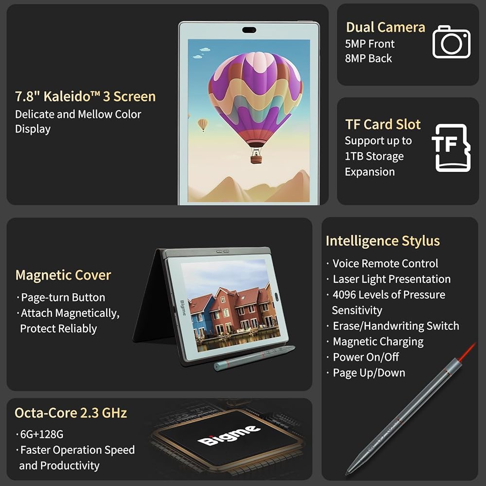 Bigme S6 Color + Ereader 6GB + 128GB 7.8 بوصة Kaleido 3 شاشة حبر إلكتروني مع حافظة قلم