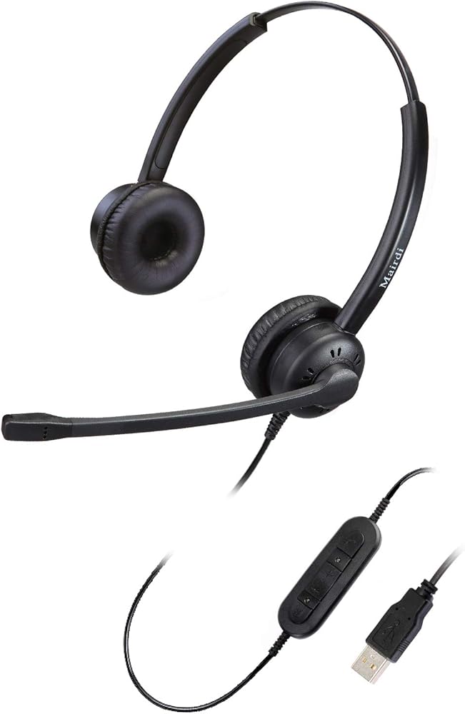 سماعة رأس MAIRDI USB مع ميكروفون للكمبيوتر الشخصي، سماعة كمبيوتر مع ميكروفون لإلغاء الضوضاء لفرق الكمبيوتر المحمول Zoom Skype Jabber Voip هاتف مكتب مركز الاتصال العمل عن بعد، التحكم في مستوى الصوت وكتم صوت الميكروفون
