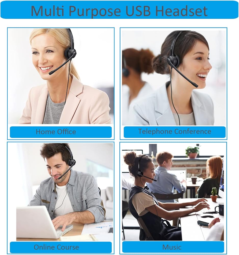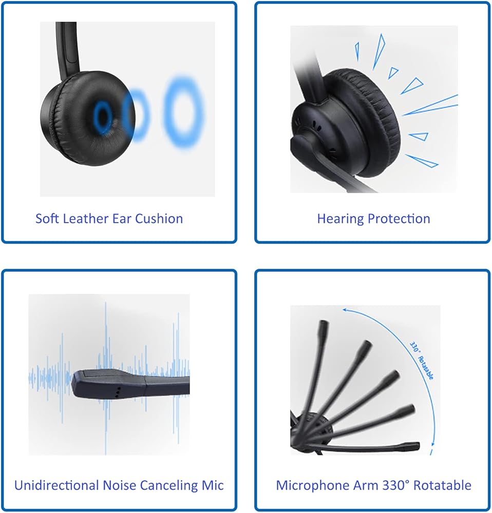 سماعة رأس USB مريحة للغاية: تصميم خفيف الوزن، وعصابة رأس سهلة الضبط لتناسب أحجام الرأس المختلفة، ووسادة أذن فائقة النعومة مع رغوة الذاكرة وجلد بروتين صديق للبشرة، مما يسمح لسماعة الكمبيوتر المحمول المزودة بميكروفون بالارتداء طوال اليوم. ذراع الميكروفون قابل للدوران 330 درجة يسمح للمستخدمين بارتداء سماعة رأس الكمبيوتر على الجانب الأيسر أو الأيمن، وهو مصمم هندسيًا لخدمة العملاء في مراكز الاتصال والمكاتب المنزلية والعمل عن بعد.