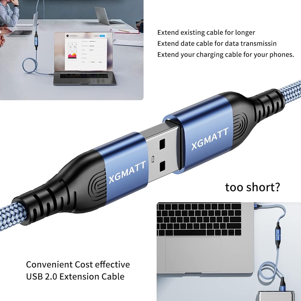 【شحن سريع ونقل البيانات 2 في 1】يدعم كابل تمديد USB 2.0 سرعات نقل البيانات تصل إلى 480 ميجابايت في الثانية، ويمكن أن يعمل بأقصى قدر من الطاقة عند استخدامه مع كابل الشحن.