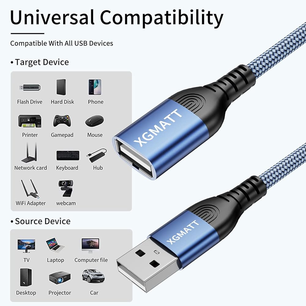 [مواد داخلية ممتازة] يتميز كابل تمديد USB هذا بقلب نحاسي مصبوغ عالي الجودة ودروع متعددة، ويمكن أن يوفر نقل وشحن أكثر أمانًا وموثوقية.