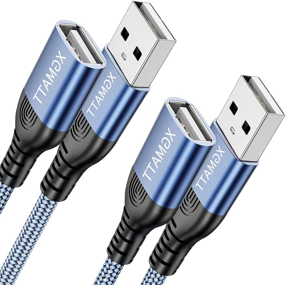 كابل تمديد USB [6.6FT+6.6FT 2Pack] كابل تمديد USB 2.0 USB نوع A ذكر إلى أنثى كابل USB 2.0 تمديد متوافق مع لوحة مفاتيح USB، الطابعة، الماوس، محرك فلاش، القرص الصلب، إلخ - أزرق