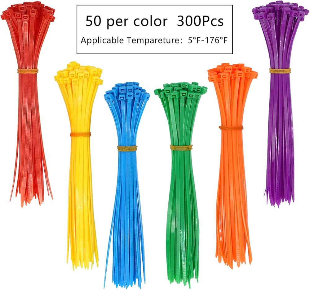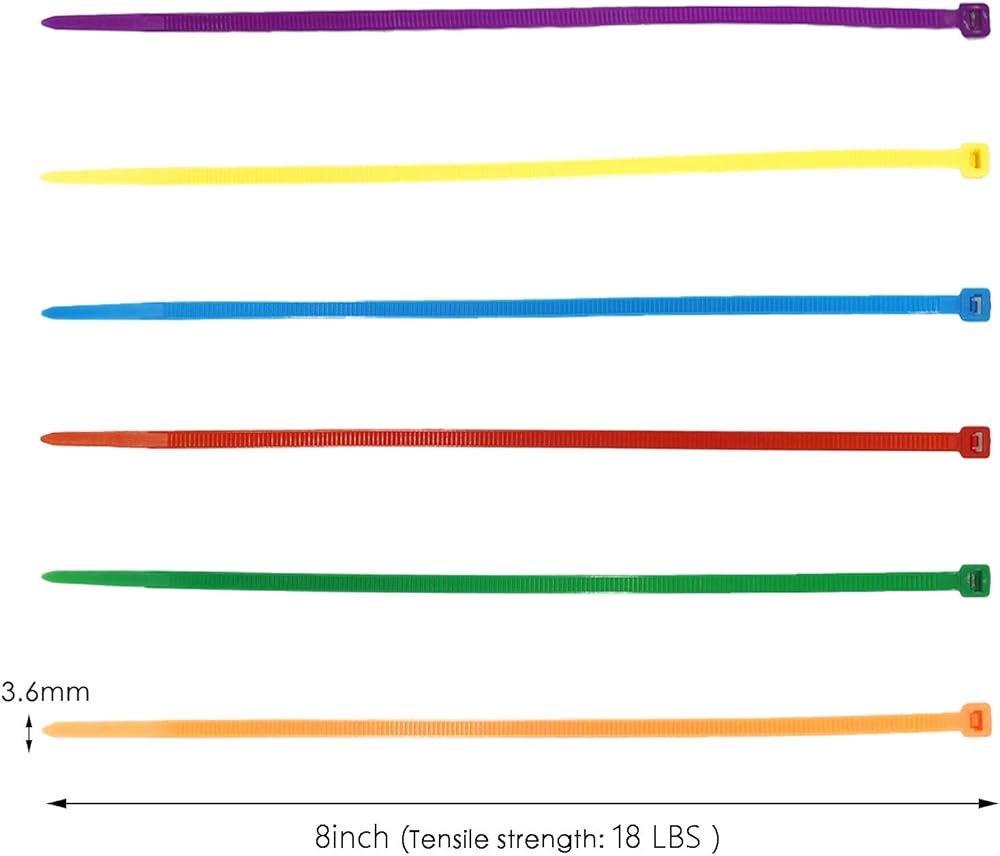 300 قطعة من أربطة الرمز البريدي النايلون متعددة الأغراض، أسلاك كابل متينة، ألوان متنوعة 8 بوصة 50 رطل، سلك قوة الشد وإدارة الحرف مثالية للداخلية والخارجية