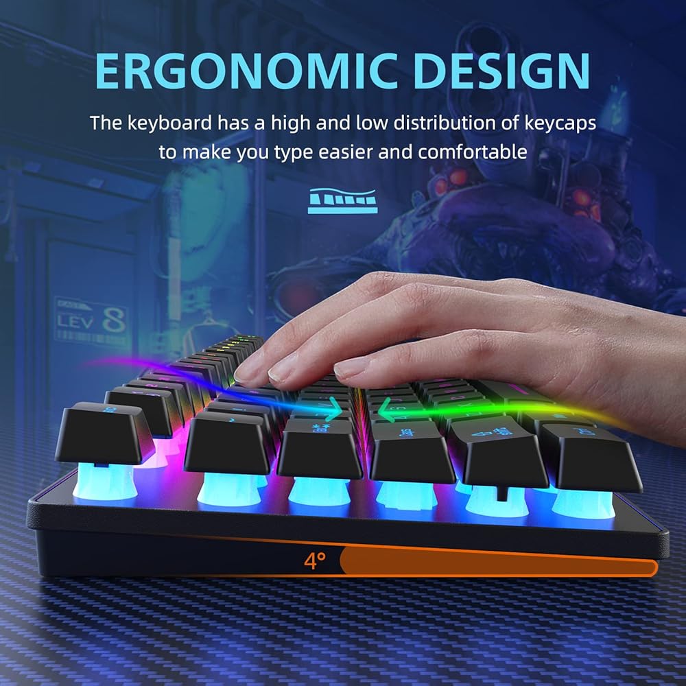 【 ماوس لوحة مفاتيح وظيفي بنسبة 80% 】: تتميز لوحة مفاتيح الألعاب اللاسلكية tkl بتصميم صغير مكون من 87 مفتاحًا لتبسيط مكتبك وتوفير مساحة أكبر لحركة الماوس أثناء اللعب المكثف، ودعم وظيفة اختصار الوسائط المتعددة FN. أغطية مفاتيح ABS مع تقنية قولبة الحقن بلونين، قادرة على نقل الإضاءة بشكل جيد، وأكثر متانة، وليس من السهل أن تبلى. تصميم وسائد سفلية مضادة للانزلاق، يحافظ على ثبات لوحة المفاتيح عند الاستخدام. 3 مستويات DPI (800/1600/2400) قابلة للتعديل، يمكنك اختيار حساسية الماوس المفضلة لديك.