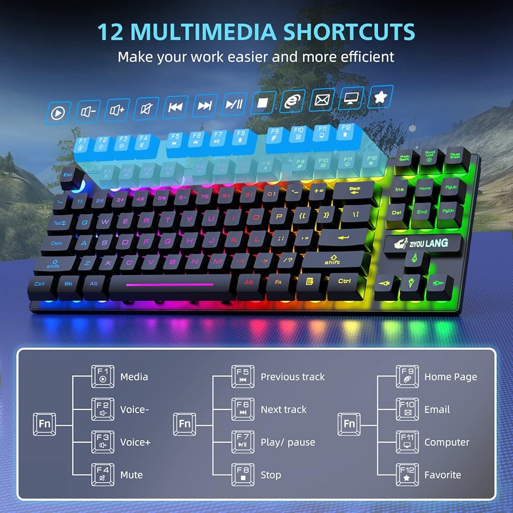 3. إضاءة خلفية رائعة: تتميز لوحة المفاتيح بإضاءة خلفية رائعة بألوان قوس قزح والماوس مزود بإضاءة خلفية RGB رائعة لضمان حصولك على تجربة خاصة في الليل.