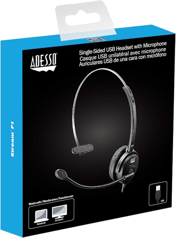 سماعة رأس سلكية أحادية الجانب من Adesso Xtream P1 مع ميكروفون قابل للتعديل بخاصية الغاء الضوضاء