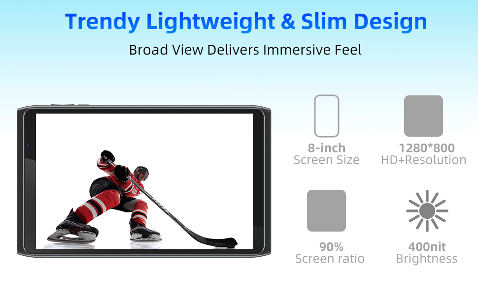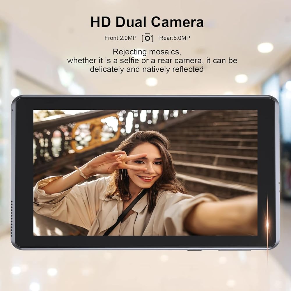 【تصميم نحيف وأنيق】 البث والتصفح على شاشة عرض كمبيوتر لوحي مقاس 8 بوصات، مصممة لجعل المحتوى الخاص بك نابضًا بالحياة دون أن تشعر بالثقل. تسمح لك الكاميرات الأمامية والخلفية المزدوجة بالتبديل بسلاسة بين الترفيه والعمل.