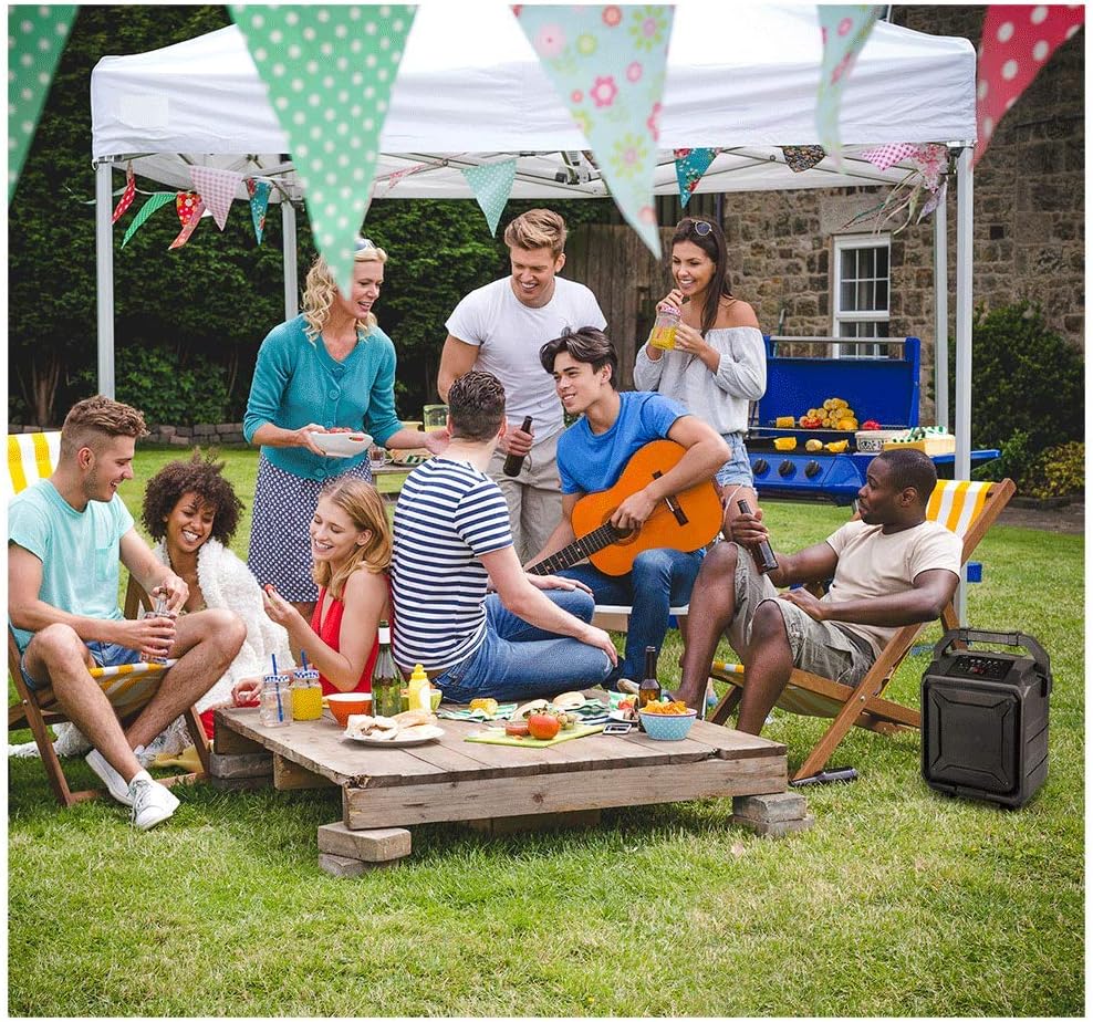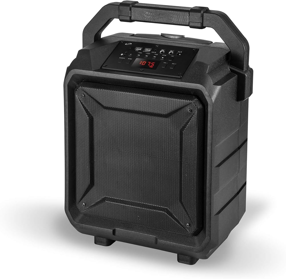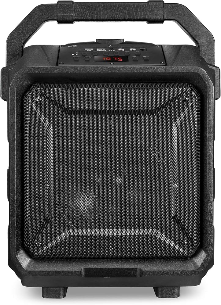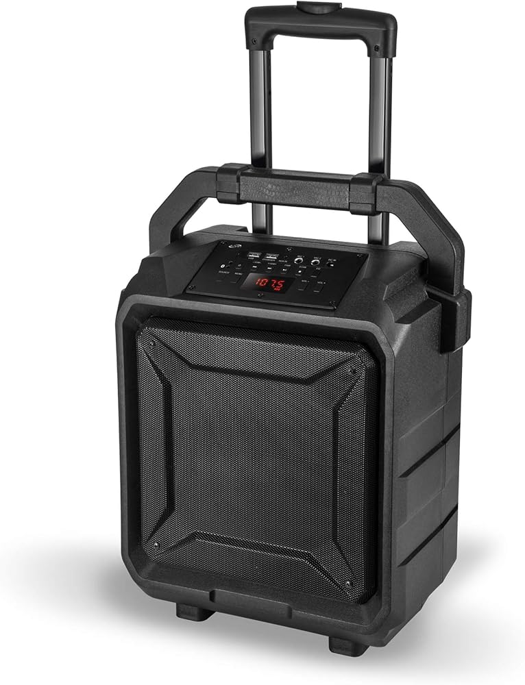 اي ليف مكبر صوت لاسلكي للباب الخلفي للحفلات ISB659B، مع بطارية مدمجة قابلة لاعادة الشحن وعجلات دوارة، اسود