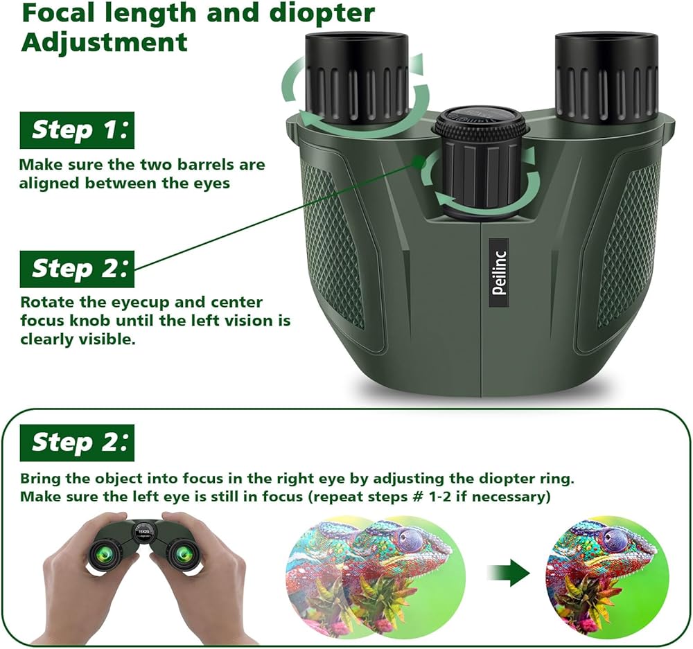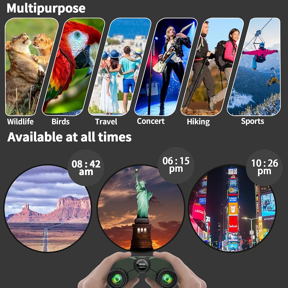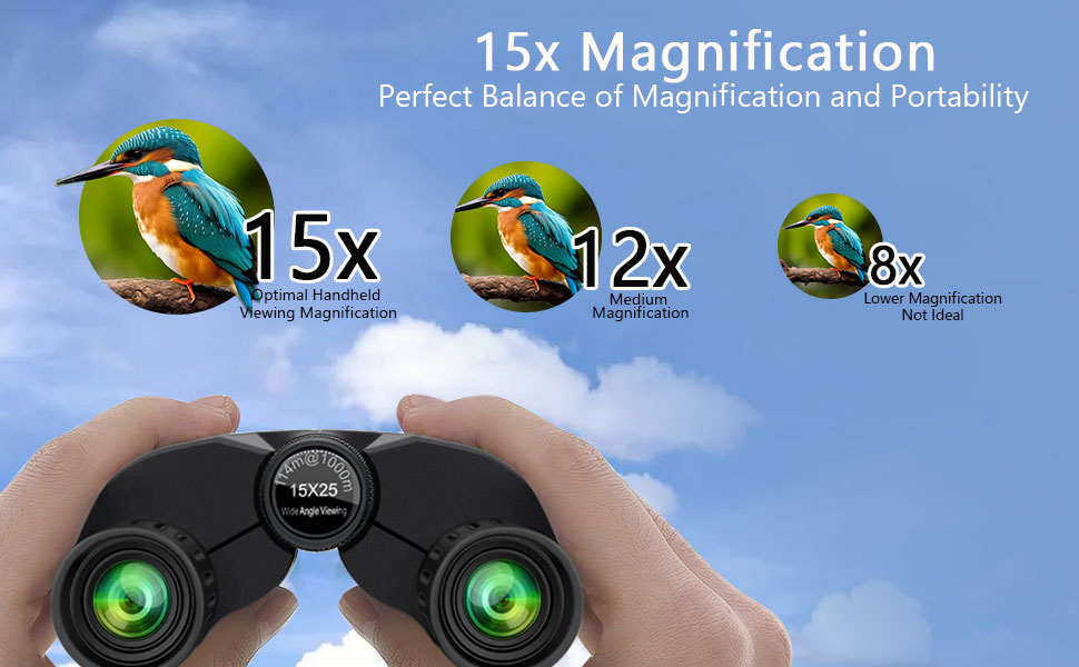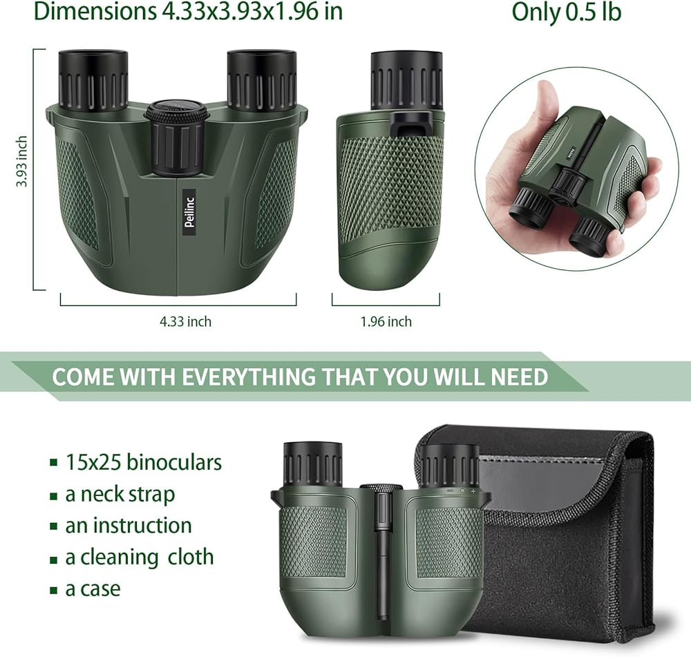 【منظار 15 × 25 مع عدسة كبيرة مقاس 16 مم 】 - دقة عالية، لا يتغير اللون أو يكون غير واضح. تكبير 15X، مجال عرض 399 قدمًا عند 1100 ياردة، مما يوفر صورًا واضحة ومفصلة.