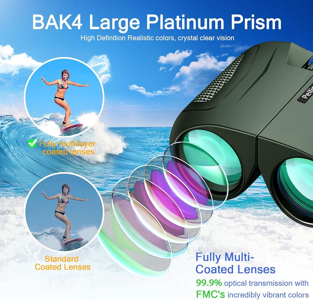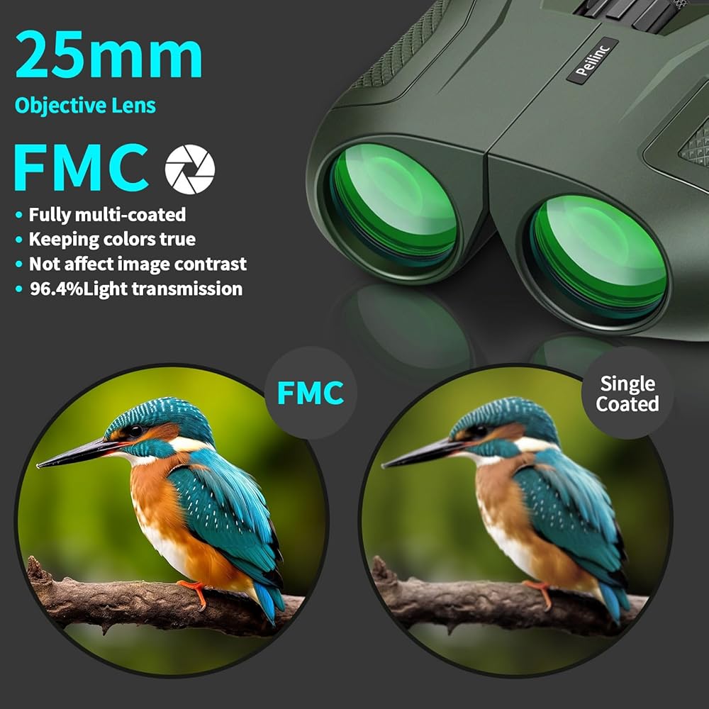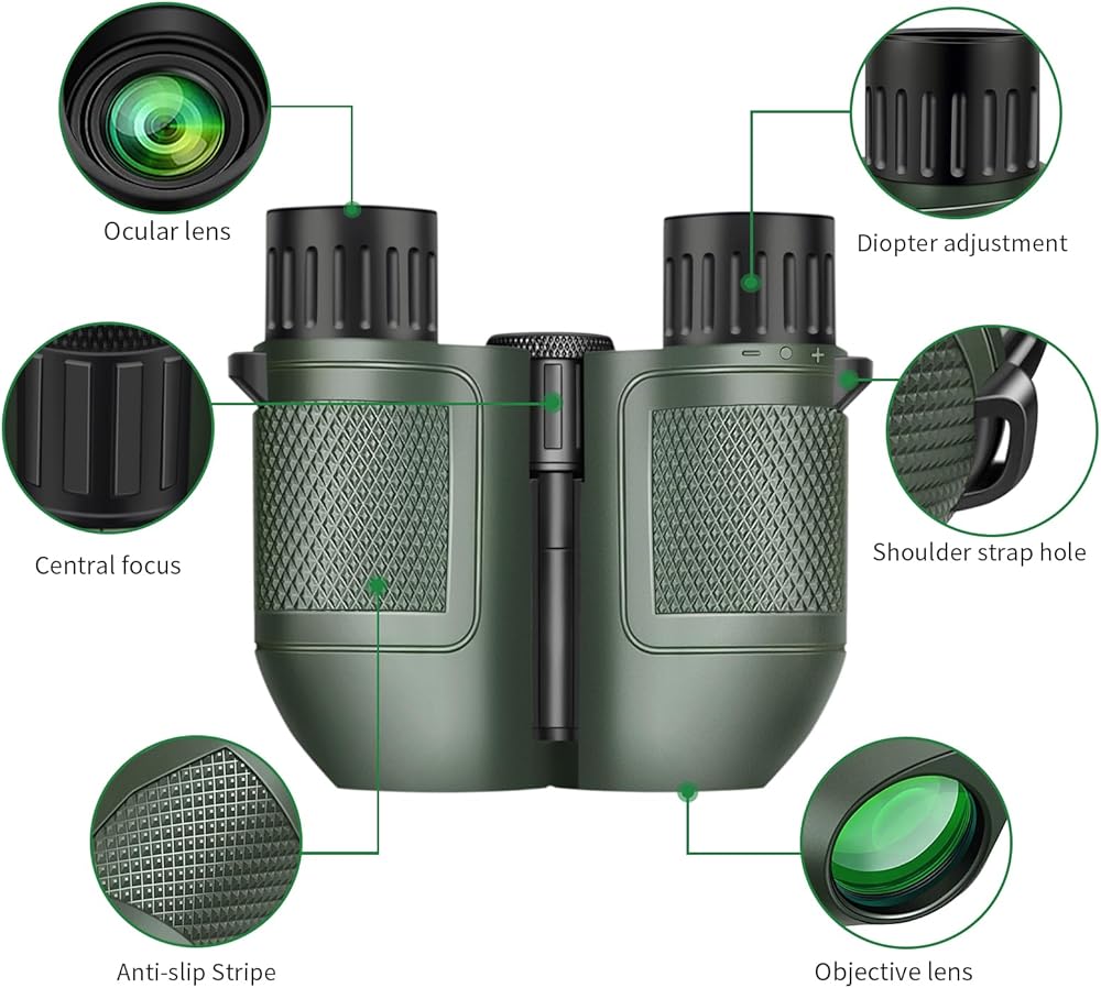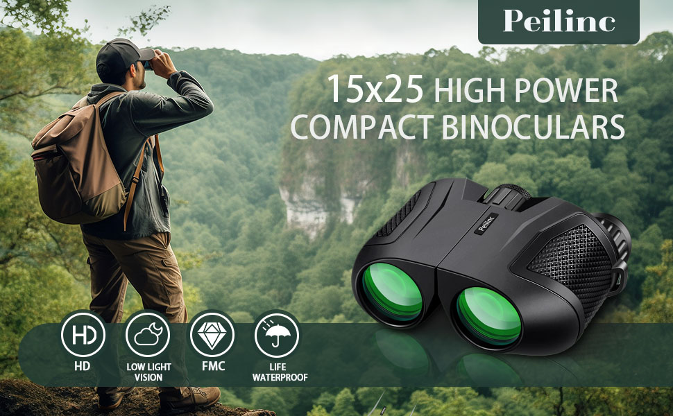 【منظار 15 × 25 مع عدسة كبيرة مقاس 16 مم 】 - دقة عالية، لا يتغير اللون أو يكون غير واضح. تكبير 15X، مجال عرض 399 قدمًا عند 1100 ياردة، مما يوفر صورًا واضحة ومفصلة.
