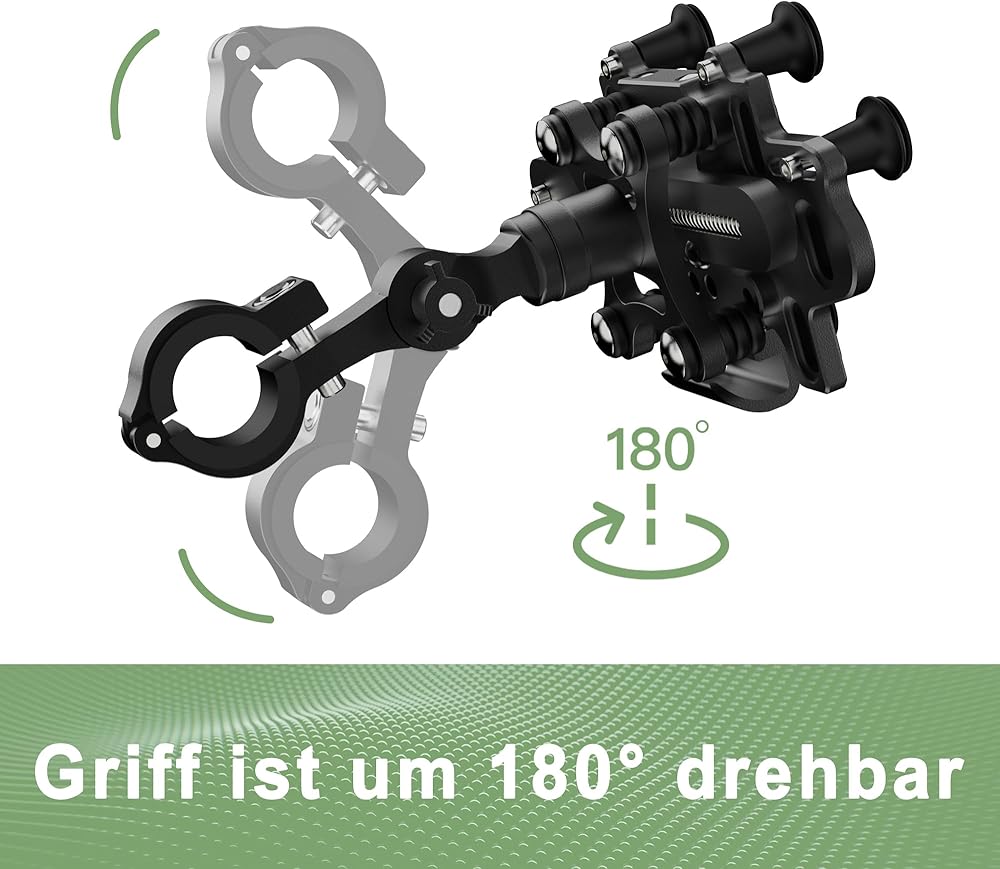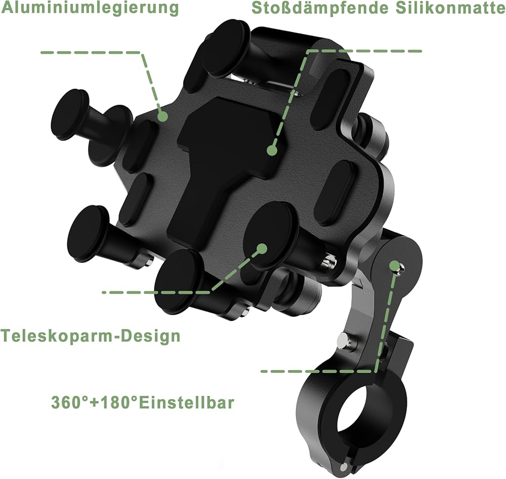 [تصميم سهل الاستخدام وتقليل الضوضاء]: تم تصميم حامل هاتف الدراجة النارية بأذرع تلسكوبية مزدوجة، والتي يمكن سحبها تلقائيًا، مما يسمح لك باستخدامه بسهولة. يحتوي حامل الدراجة النارية القابل للدوران 540 درجة على كرة مشتركة قابلة للدوران 360 درجة وهيكل ربط ميكانيكي، يمكنك الدوران 540 درجة لضبط موضع الهاتف المحمول. يمكنك ضبط زاوية التنقل حسب احتياجاتك بيد واحدة. علاج لتقليل الضوضاء من السيليكون لتجنب مشاكل الضوضاء أثناء القيادة.
