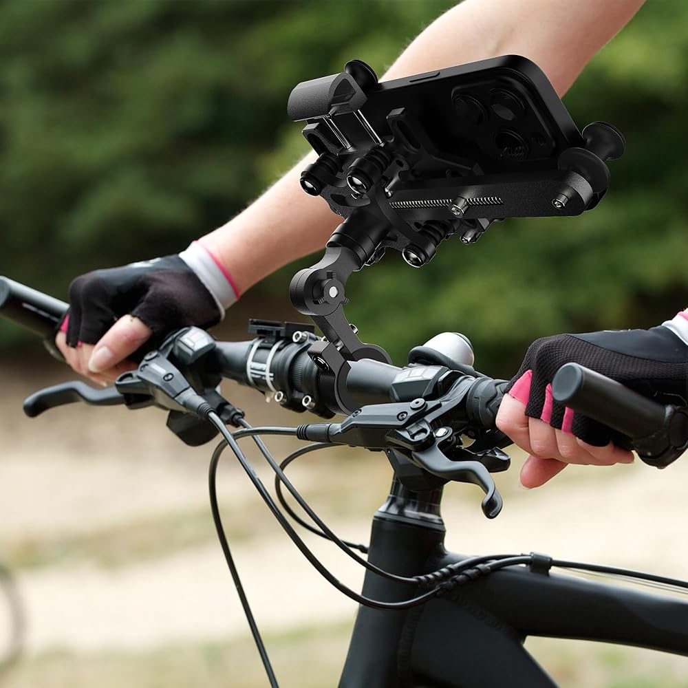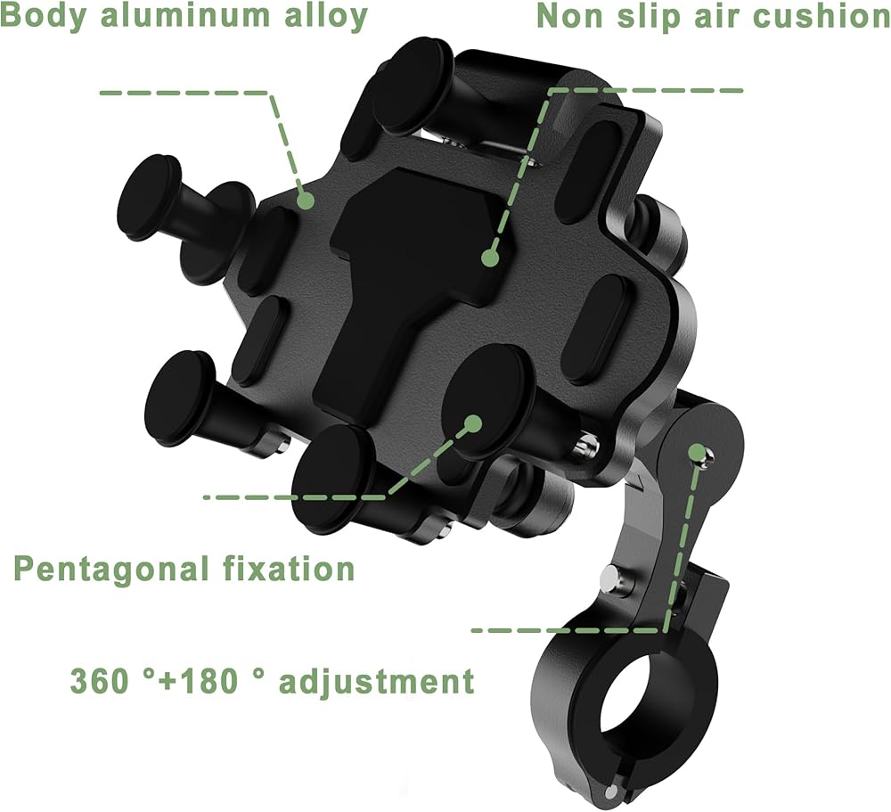 [دعم ثابت وحماية من امتصاص الصدمات]: ذراع مشبك خماسي، هيكل قفل ذراع تلسكوبي مزدوج، يمكن لحامل الهاتف الخلوي للدراجات النارية من سبائك الألومنيوم أن يحيط بالهاتف الخلوي ويدعمه ويغلقه بإحكام في جميع الجوانب. اجتاز حامل الهاتف الخلوي للدراجات النارية اختبار القيادة عالية السرعة، ومطبات السرعة الوعرة، والطرق الجبلية على الطرق الوعرة، والكبح والكبح في حالات الطوارئ، ومستقر وخالي من الاهتزاز. تعمل وسادات السيليكون المدمجة وامتصاص الصدمات على حماية هاتفك من الخدوش وتقليل الاهتزاز.