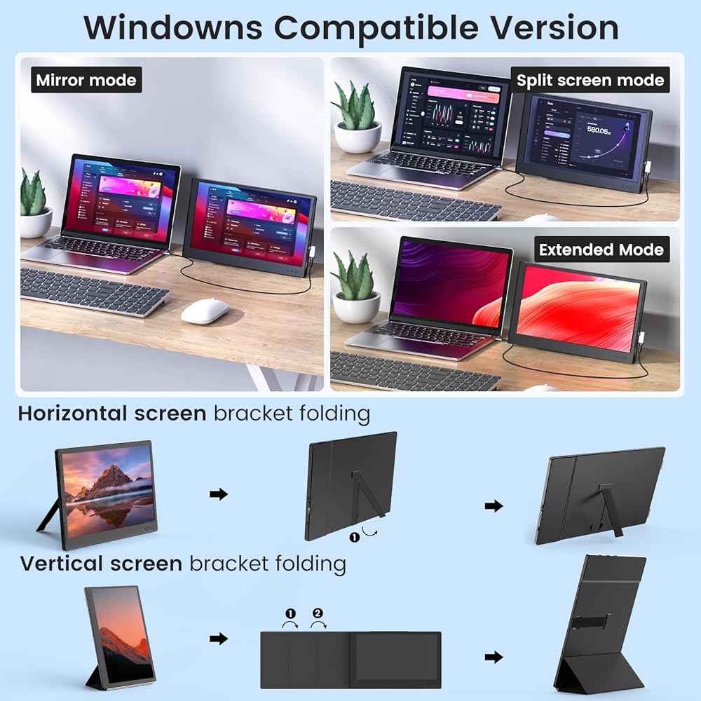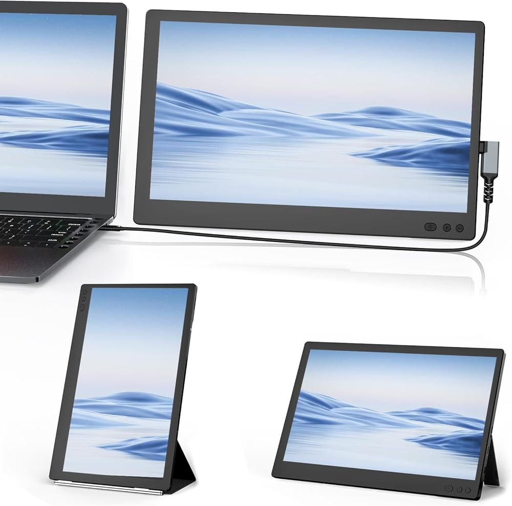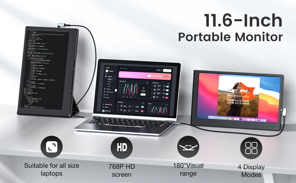موسع شاشة الكمبيوتر المحمول FLYTOCCA، شاشة الكمبيوتر المحمول المحمولة، موسع شاشة الكمبيوتر المحمول 1080P FHD، التوصيل والتشغيل بدون سائق (P1S-11.6 بوصة مزدوج)
