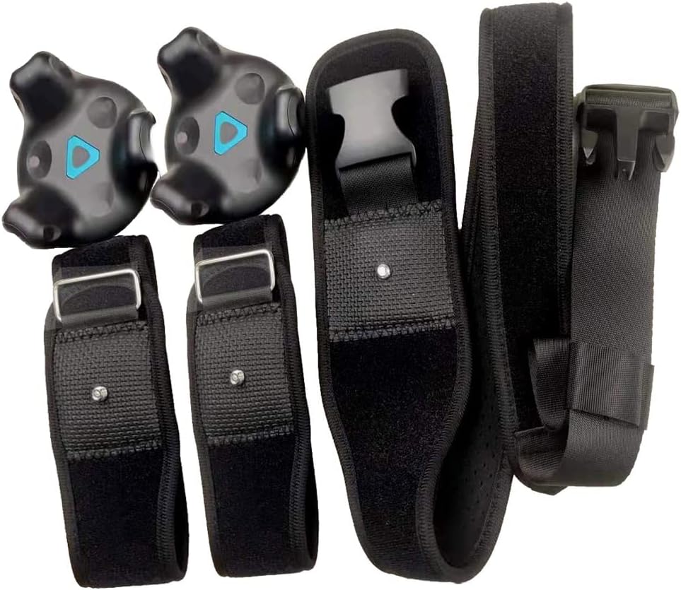 حزام تعقب JLD VR لجهاز تعقب نظام HTC Vive - حزام حزام قابل للتعديل لتتبع الخصر والجسم بالكامل في الواقع الافتراضي (1 × حزام خصر و2 × حزام معصم) (لا يتضمن جهاز التتبع)