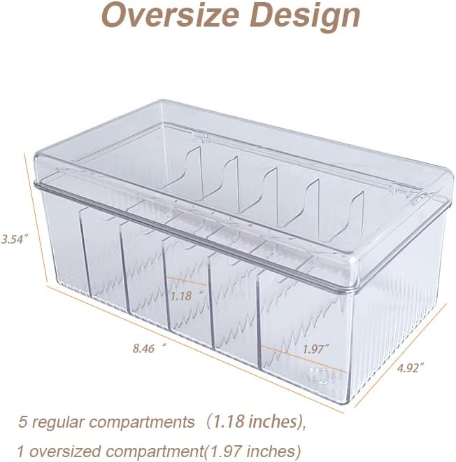 【تصميم حجرة كبيرة】: البعد الإجمالي لصندوق تخزين منظم الكابلات (الطول × العرض × العمق) هو 8.4 × 4.92 × 3.54 بوصة، والحجرة العادية (الطول × العرض × العمق) هي 1.18 × 4.92 × 3.54 بوصة، حجرة كبيرة جدًا (الطول × العرض × العمق) هي 1.97 × 4.92 × 3.54 بوصة، تصميم الحجرة الكبير جدًا يسمح لصندوق تخزين السلك هذا بتخزين العناصر مثل بنك الشاحن وكابلات الشحن الطويلة، ويجعل من السهل إدخال العناصر وخارج الصندوق.