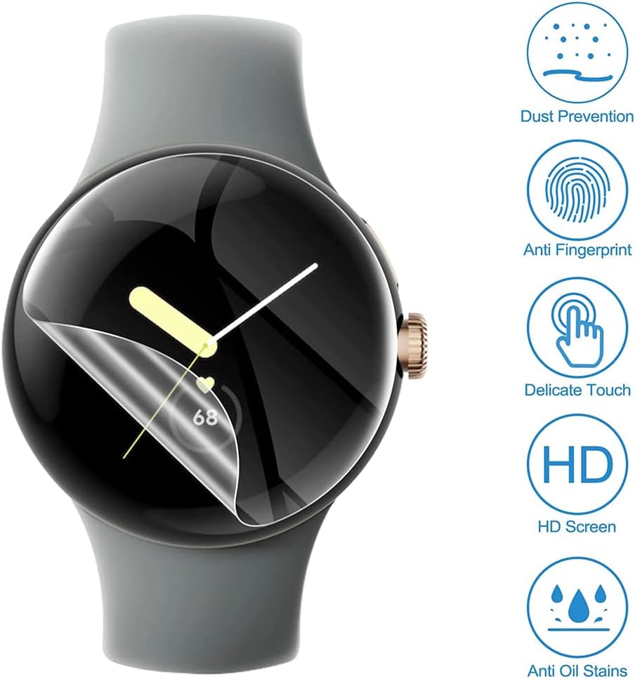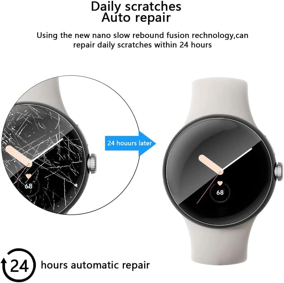 [أقصى حماية للتغطية]: يوفر الحماية لساعة البكسل الخاصة بك ضد الخدوش والماء وبصمات الأصابع. تقنية القطع الدقيقة ومادة البولي يوريثين الحراري الناعمة تجعل الغشاء الواقي يغطي زوايا وحواف الجهاز بشكل مثالي، ولن يتشوه الواقي أو حتى يسقط بسهولة.