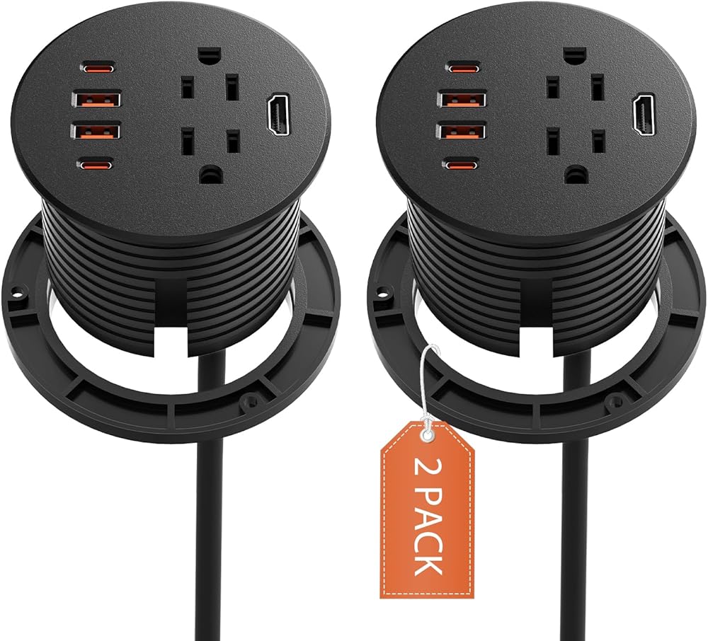 حلقة طاقة لسطح المكتب مع PD 20 وات USB C، شريط طاقة مجوف مع 2 منافذ تيار متردد (TR)، تناسب فتحة حلقة معدنية 3 1/8 بوصة - 3 1/4 بوصة، مقاومة للعبث، حلقة تثبيت USB مستديرة لطاولة الأريكة الجانبية، مدرجة في قائمة ETL in Kuwait