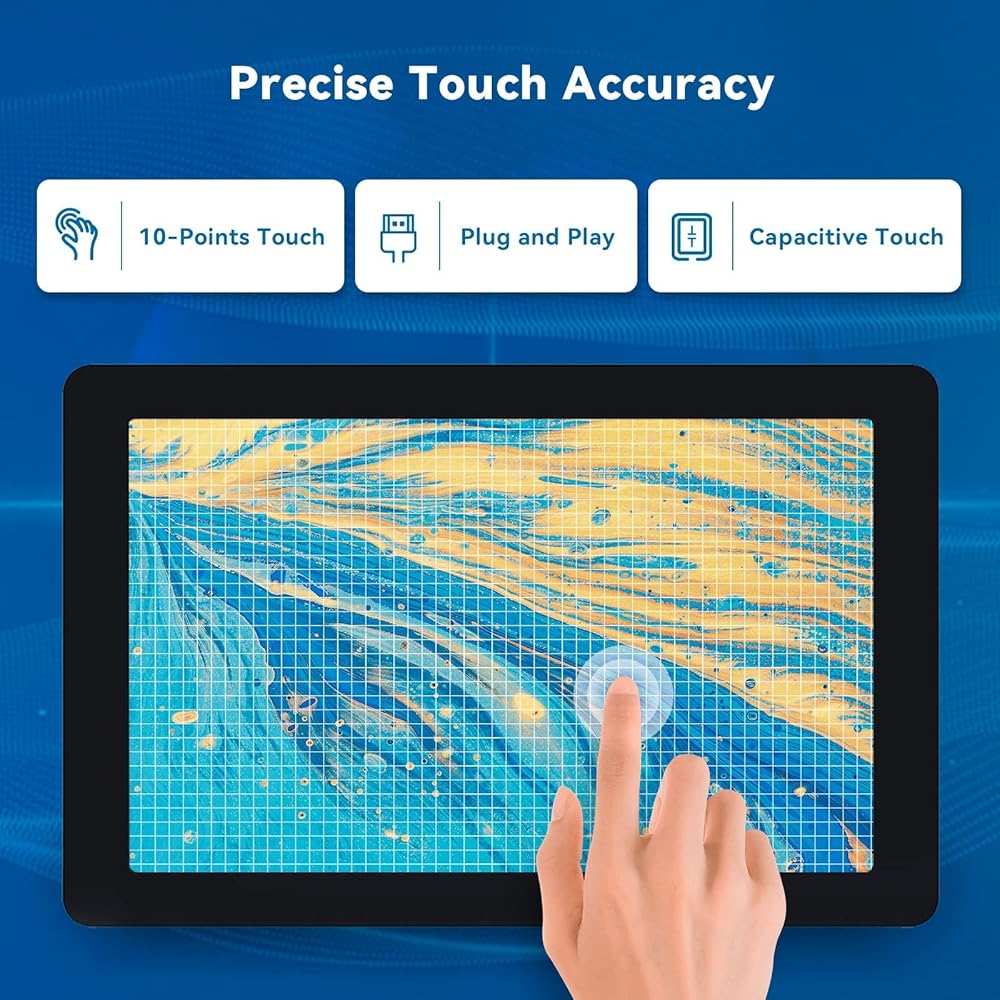 دقة عالية - تتميز شاشة LCD التي تعمل باللمس مقاس 10.1 انش لجهاز راسبيري باي (تدعم اللمس بـ 10 نقاط) بدقة عالية تبلغ 1280 × 800 بكسل وصورة بألوان حقيقية، مما يمنحك تجربة مشاهدة غامرة حقًا.