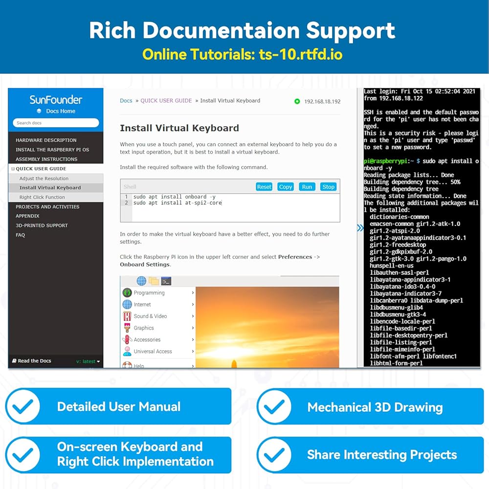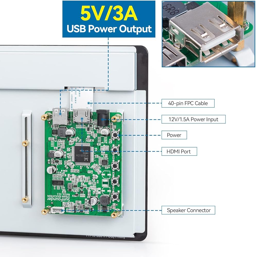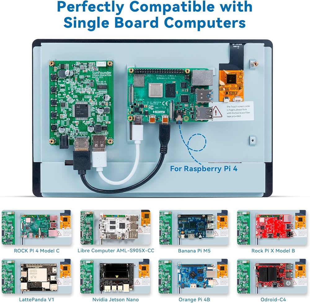 هذه الشاشة التي تعمل باللمس صن فوندر هي شاشة لمس IPS من 10 نقاط بحجم كبير 10.1 انش ودقة عالية تبلغ 1280 × 800، مما يمنحك تجربة بصرية مثالية. يعمل مع أنظمة تشغيل مختلفة بما في ذلك راسبيان واوبونتو واوبونتو ميت وويندوز واندرويد وكروم او اس.