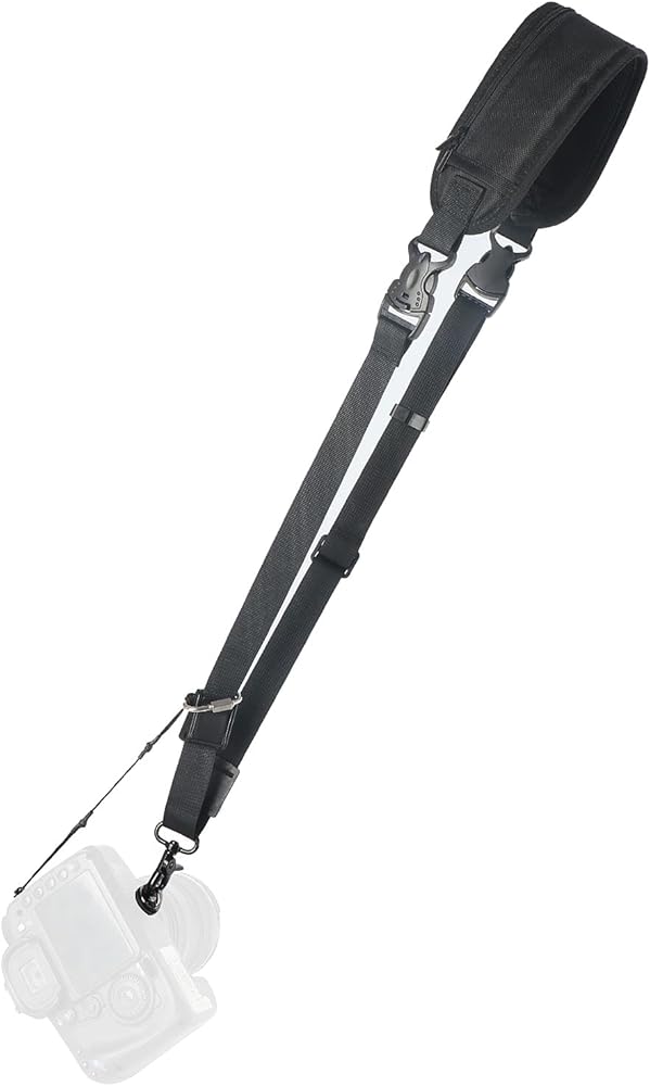 أسهل على كتفك: يتميز حزام الكاميرا المزود بحمالة فائقة الخفة ومصمم هندسيًا وسهل الإزالة ويخفف ضغط الكتف، كما أن حزام الكاميرا المريح هذا يبدو وكأنه بالكاد موجود.