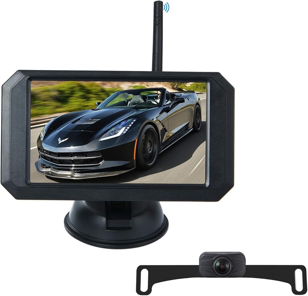 Size:10.74*5.98*3.54inches Weight: 1.54 lbFeatures 1.High compatibility for cars ( suit for cars which are less than 40 ft) 2.Wireless for easy installation 3.Switched mirrored/facing view makes the backup cameras can used for front facing camera. 4.Camera is IP68 waterproof 5.HD color and Super night version Easy installation: Since it is a wireless signal transmission, there is no need to run wires from the monitor to the camera. The monitor base is removable and can be mounted directly on the flat panel or on the windshield. Safe and Easy Parking: For all types of cars and pickups, campers and small RVs. The camera performs well both day and night.