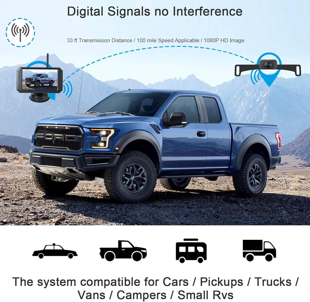 【Stable Singal With No Interference 】Digital wireless ensures the stability of signal transmit which highly enhances the image reliability. Free from ing image/ weak signal. The camera will never be interrupted by other devices.Upgraded digital wireless licence plate camera d for 40 ft at high speeds no interference. Compatible with Cars, Pickups,trucks,Small RVs,Camper,etc