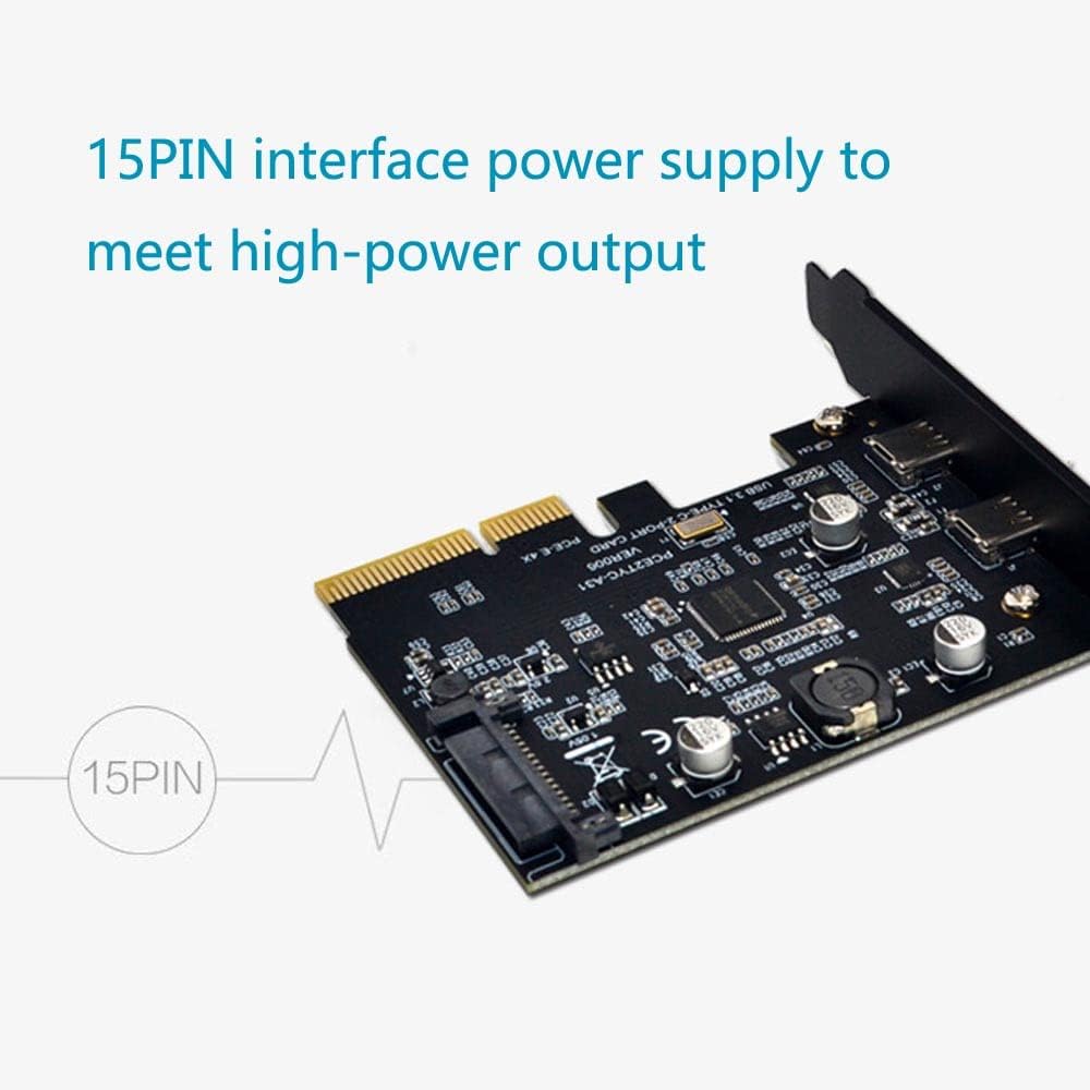 PCI-E إلى USB3.1: قم بتوسيع جهاز الكمبيوتر الخاص بك بمنفذين إضافيين؛ USB3.1 Gen 2: بطاقة PCI-E مجهزة بعرض نطاق 10 جيجابت في الثانية، مما يضمن نقل سريع للبيانات، وسرعة حقيقية لـ USB3.1 للمنفذ الفردي. دعم التوصيل السريع والتوصيل والتشغيل بدون محرك (ولكن يحتاج فقط إلى تثبيت برنامج التشغيل عند استخدامه على نظام التشغيل Windows 7) الفتحة المتوافقة: PCIe x4، PCIe x8، PCIe x16، ولا يدعم فتحة PCI-E 1X. توافق جيد: متوافق مع Windows 7/8/10/Linux Kernel؛ منفذ إمداد طاقة 15PIN قوي: مزود بواجهة احتياطية لإمداد الطاقة SATA 15PIN، قم بتوصيل سلك طاقة الكمبيوتر لتزويدك بقدرة إمداد طاقة قوية، مناسب لمعظم مستلزمات طاقة الهيكل، لم تعد بحاجة للقلق بشأن مشكلات مطابقة إمداد الطاقة، إمدادات الطاقة كافية ومستقرة؛ يمكنه شحن الهواتف المحمولة ذات الواجهة من النوع C (بما في ذلك iPhone وSamsung والهواتف المحمولة الأخرى)