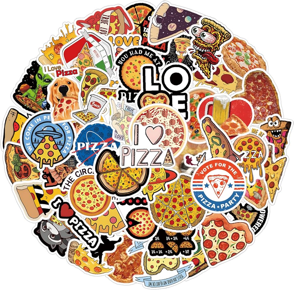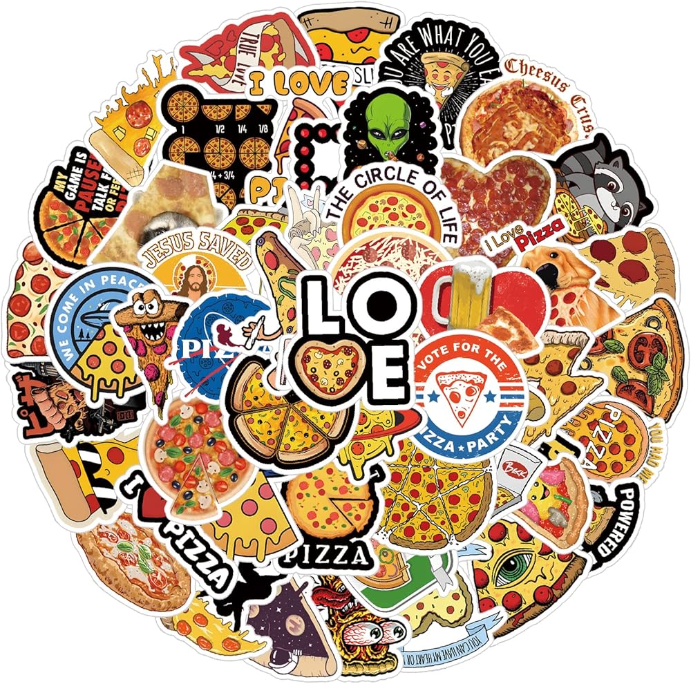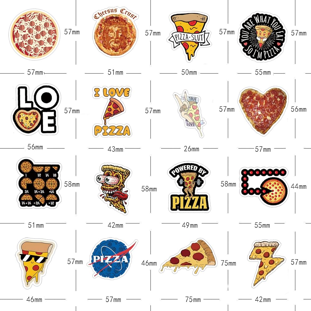 52 قطعة من ملصقات طعام البيتزا للاطفال، ملصقات فينيل مقاومة للماء للابتوب وممتص الصدمات وزجاجات المياه والكمبيوتر والجوال والقبعة الصلبة وملصقات السيارة