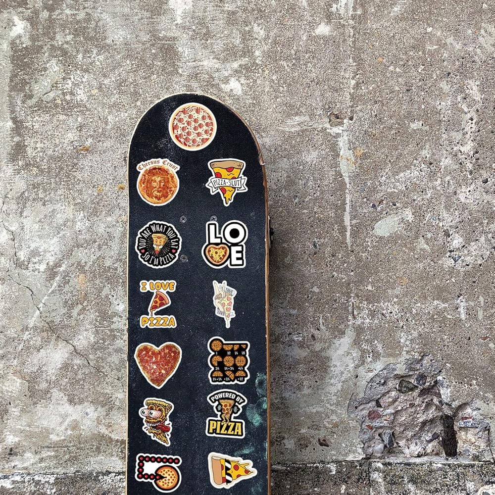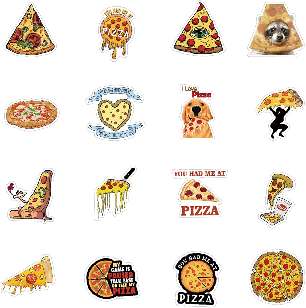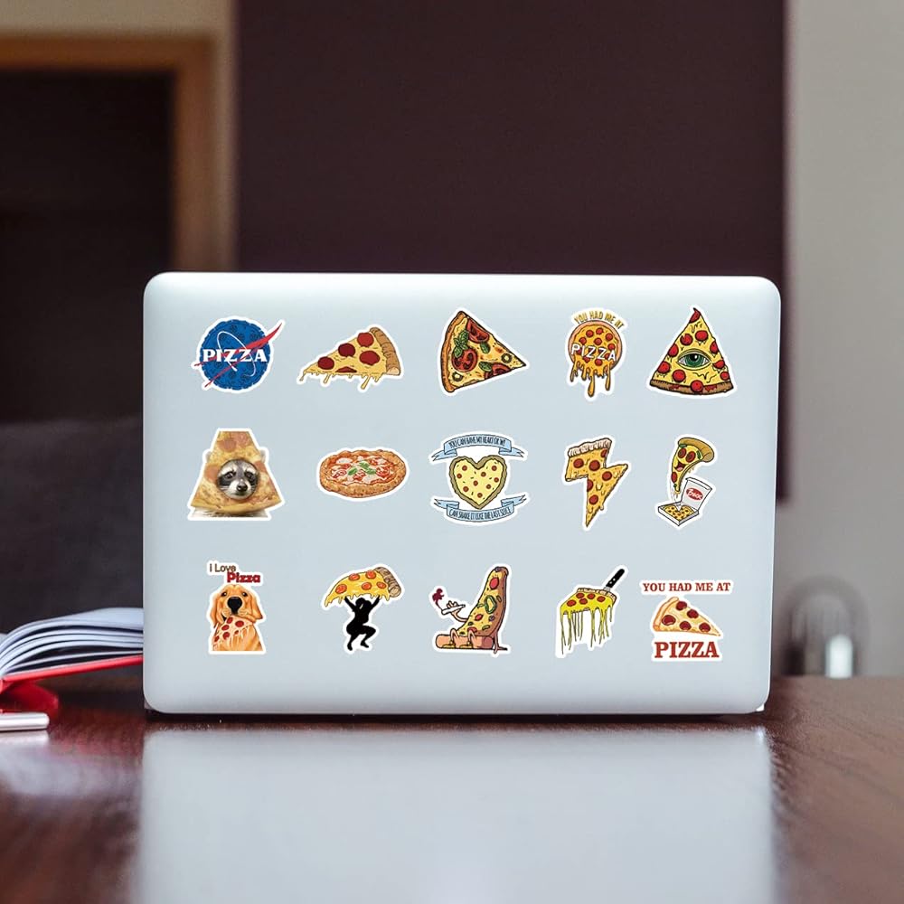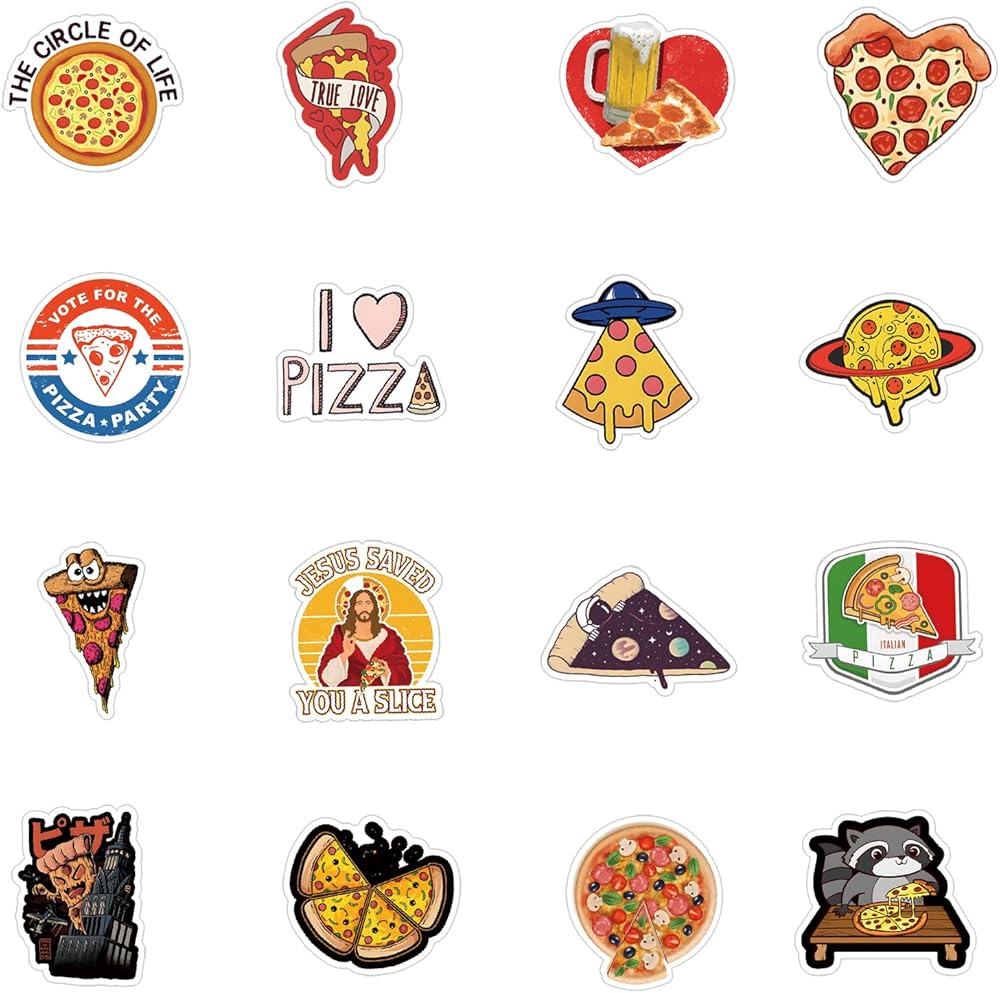 52 قطعة من ملصقات طعام البيتزا للاطفال، ملصقات فينيل مقاومة للماء للابتوب وممتص الصدمات وزجاجات المياه والكمبيوتر والجوال والقبعة الصلبة وملصقات السيارة