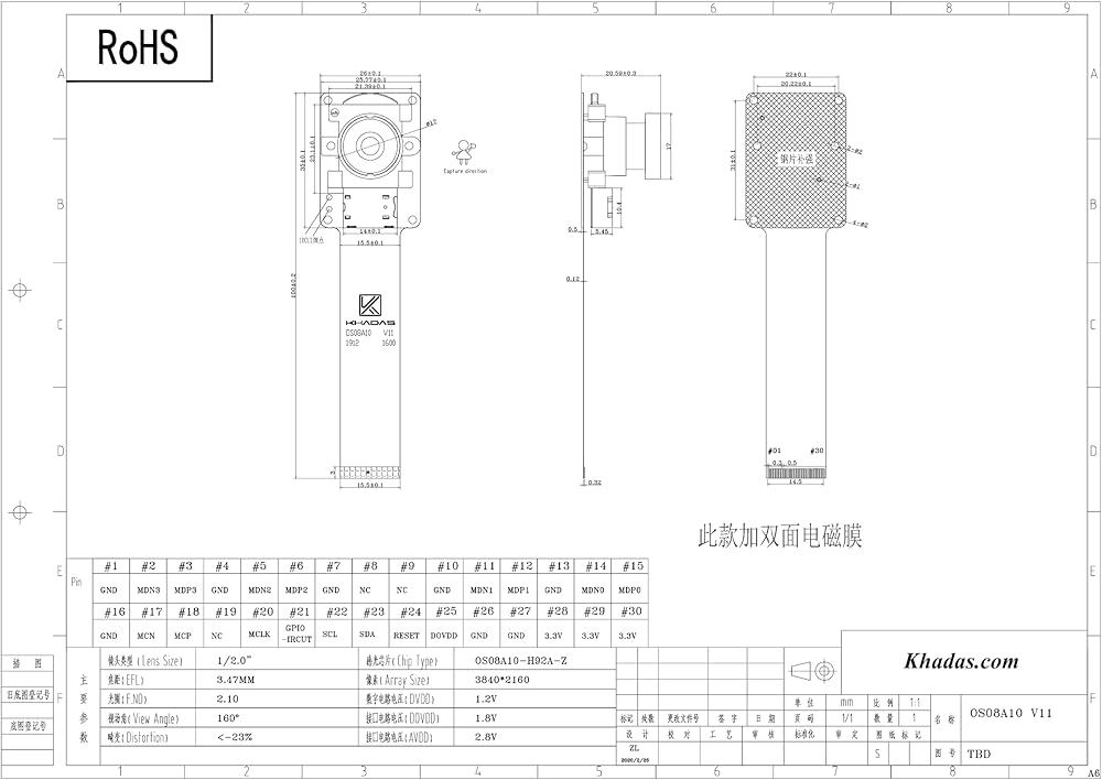 • أبرز الملامح: 8 ميجابكسل بتقنية HDR IR-CUT فلتر MIPI-CSI كابل FPC واجهة واجهة واجهة FPC