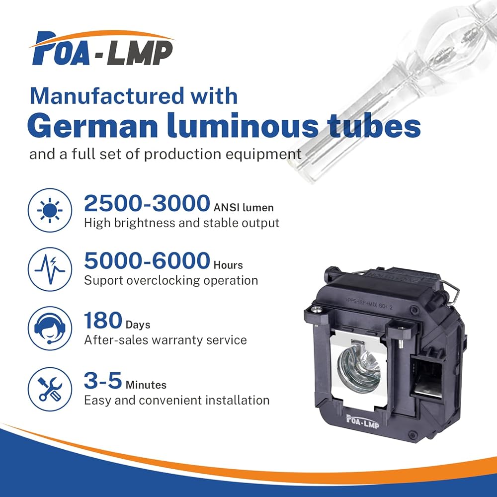 • تستخدم مصابيح P0A-LMP أنابيب مضيئة ألمانية وعاكسات مطلية بدقة، مما يوفر لك سطوعًا ووضوحًا فائقًا؛ وقد تم اختبار كل مصباح من مصابيح POA-LMP بدقة قبل الشحن، ومن السهل تركيبه في جهاز العرض الخاص بك.