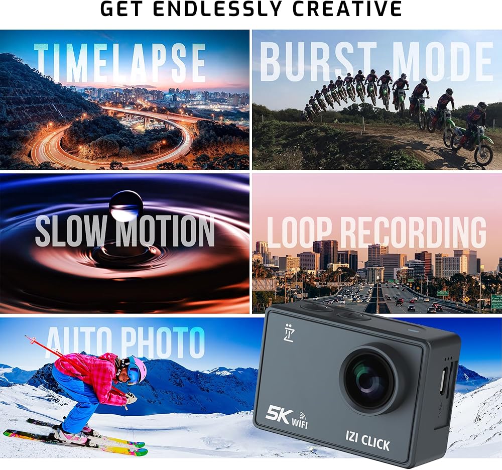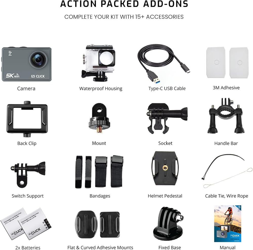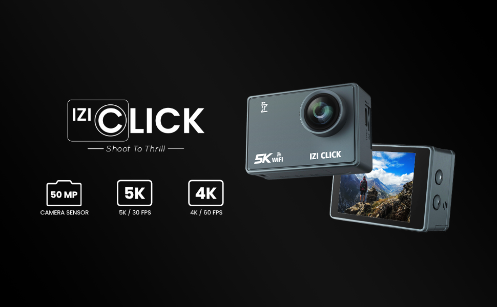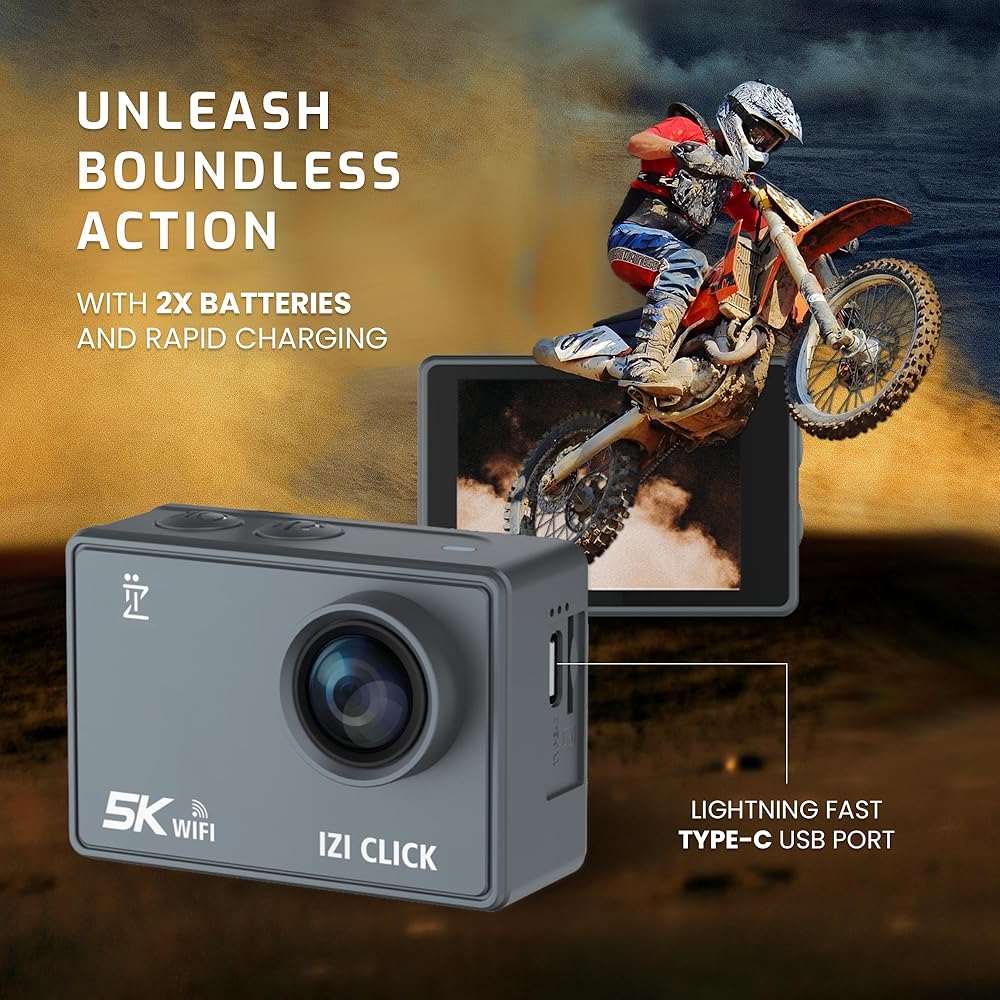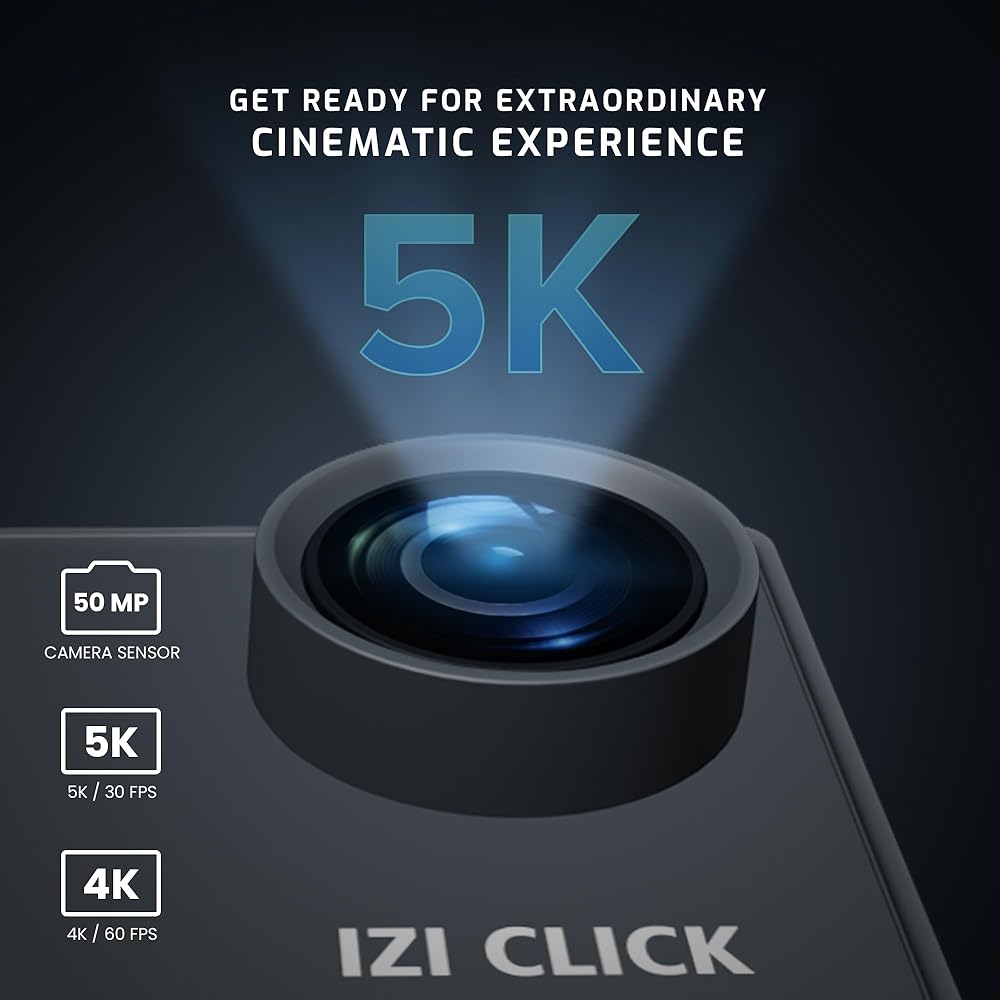 ايزد كاميرا اكشن 5K 30 اطار في الثانية للمبتدئين من كليك | زاوية واسعة 170 درجة HD، تثبيت EIS | موتو فولوج، كاميرا داش، تصميم مقاوم للماء 30 متر، دعم ميكروفون خارجي، اكثر من 15 ملحق، ضمان لمدة عام