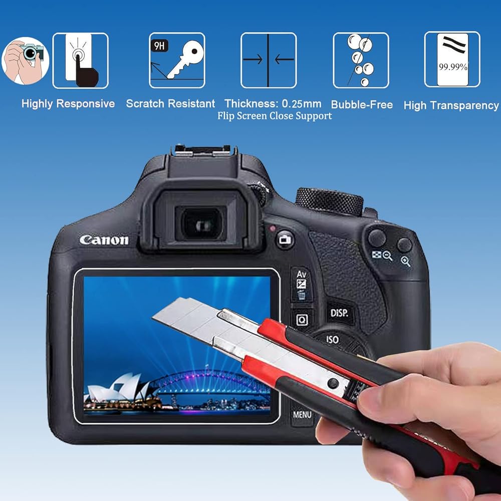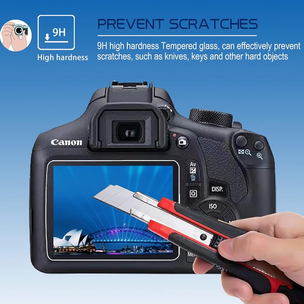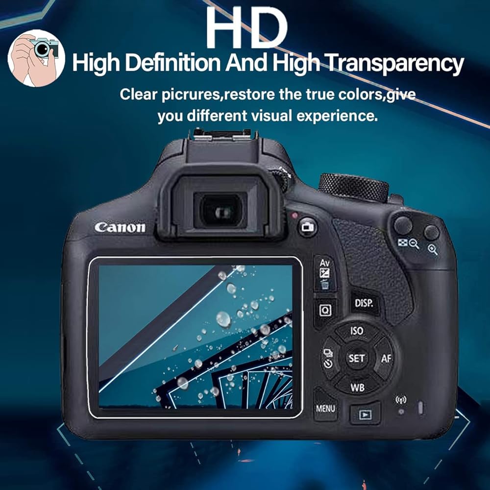 • 💪【حماية فعالة】مصنوعة من زجاج مقسى 9H مصمم خصيصًا لـ Canon EOS Rebel T6(1300D) T7(1500D) T8(2000D)