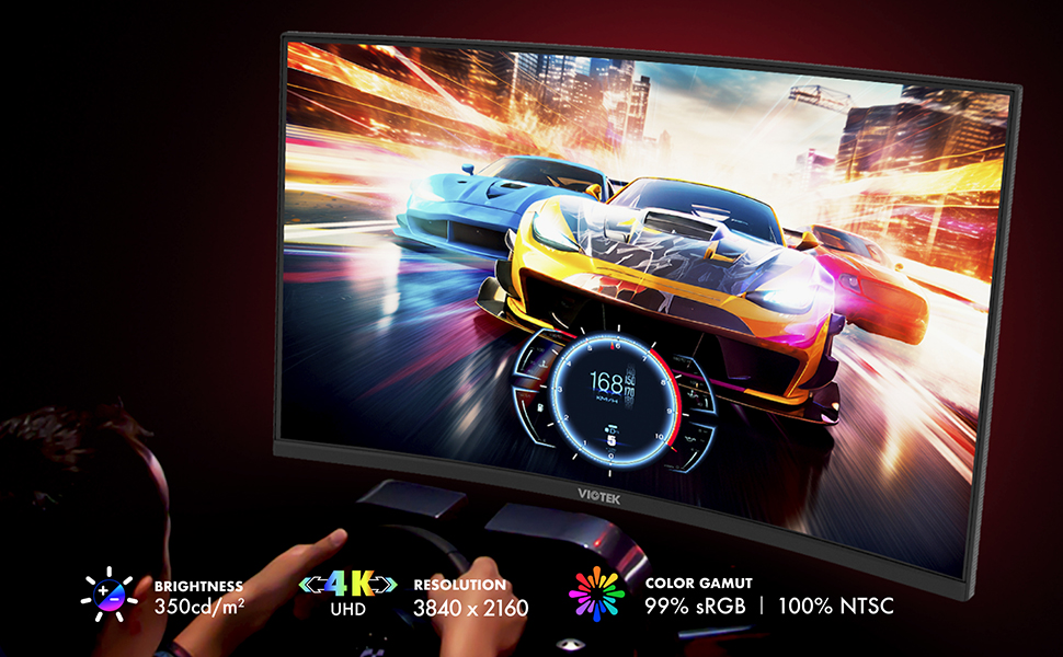 انغمس في التفاصيل - تعرض لوحة VA المجهزة بتقنية HDR400 16.7 مليون لون مع نسبة تباين 3000:1. إنها تنتج صورًا غنية بالألوان مع نطاق sRGB بنسبة 99% وتفاصيل مذهلة لا يمكن أن تأتي إلا من شاشة UHD 3840x2160p حقيقية.