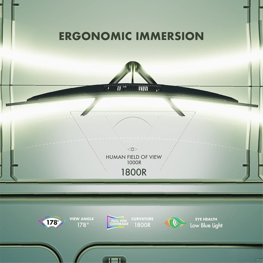 MULTIMEDIA JUGGERNAUT - تنتج هذه الشاشة العريضة بدقة 4K صورًا مذهلة وتلتقط كل التفاصيل، وتحول كل إطار إلى وليمة بصرية. يوفر الانحناء العميق 1500R انغماسًا أكبر في المشاهدة من خلال تغطية مجال رؤية أكبر من الشاشات 1800R.