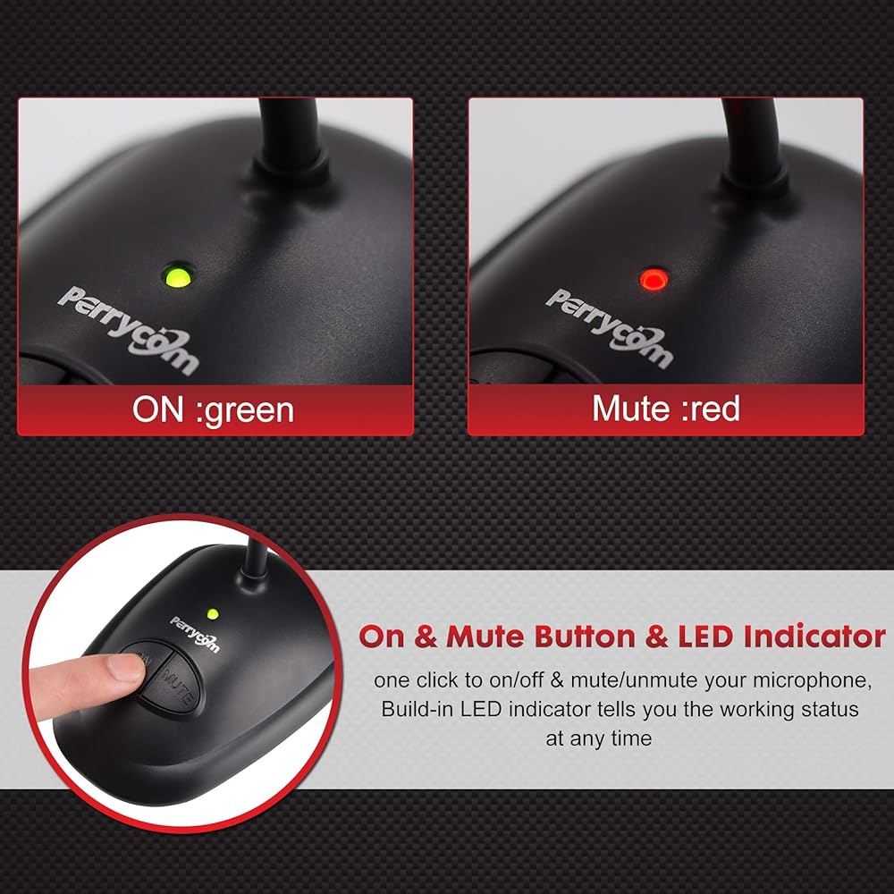 • زر تشغيل الميكروفون وكتم الصوت ومؤشر LED - بنقرة واحدة لتشغيل وإيقاف وكتم الصوت / إلغاء كتم صوت ميكروفون الكمبيوتر بمنفذ USB، مؤشر LED مدمج يخبرك بحالة العمل في أي وقت.