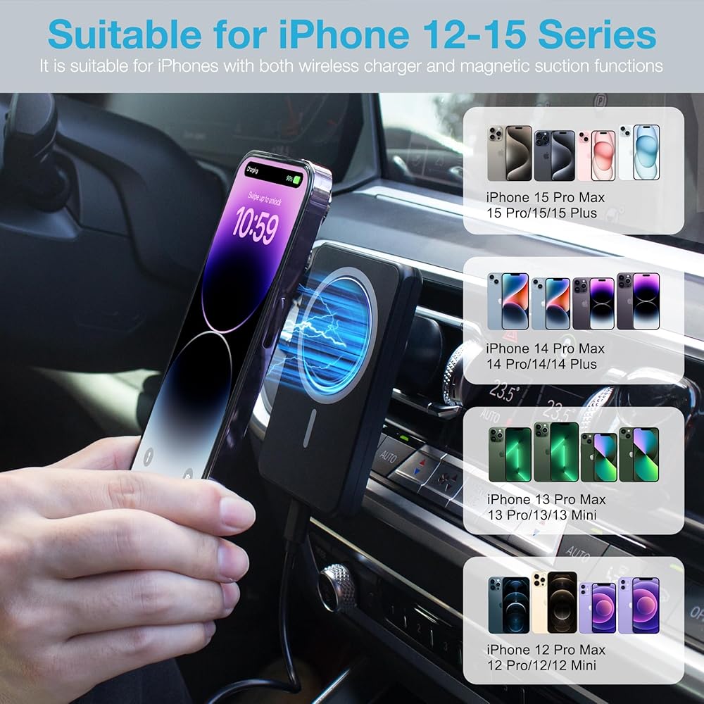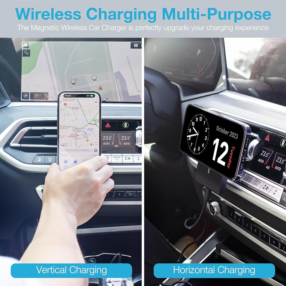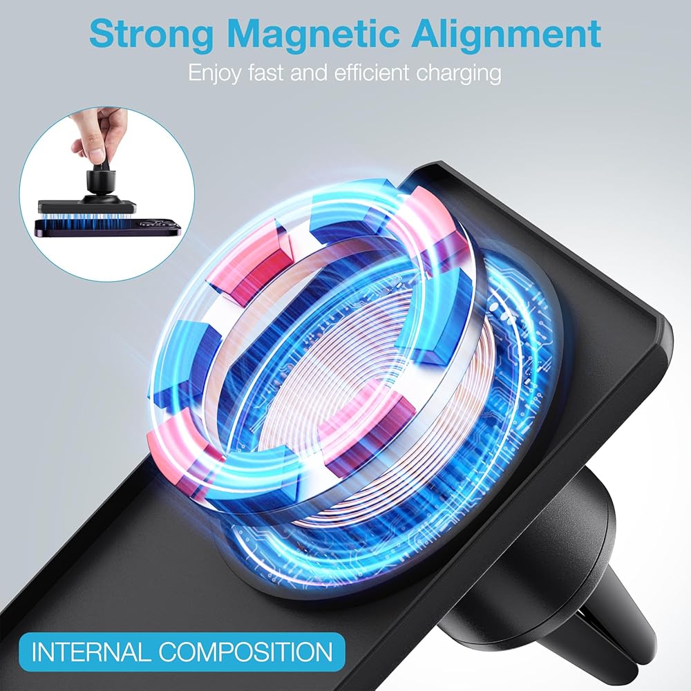 حماية سلامة الشحن: تم تصميم الشاحن اللاسلكي المغناطيسي للسيارة مع وضع سلامتك في الاعتبار. ومع معايير السلامة الصارمة، سيتم شحن أجهزتك بأمان وكفاءة. استمتع بشحن سريع وفعال وآمن أثناء رحلاتك.