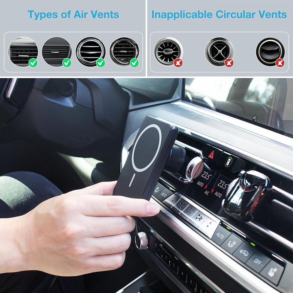 محاذاة مغناطيسية قوية: يحافظ شاحن السيارة اللاسلكي على هاتفك ثابتًا في مكانه أثناء القيادة. بفضل تقنيته المتقدمة، يمكنك تشغيل أجهزتك بسهولة دون متاعب الكابلات الفوضوية. يرجى ملاحظة: إنه مناسب لأجهزة iPhone التي تحتوي على وظائف الشاحن اللاسلكي والشفط المغناطيسي.