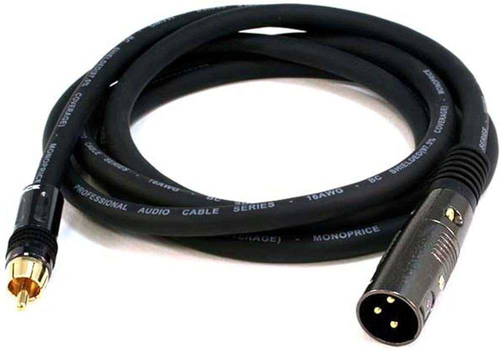 يقوم كابل XLR إلى RCA بتحويل الإشارة الصوتية المتوازنة إلى إشارة غير متوازنة. يعد هذا أمرًا جيدًا لإرسال إشارات صوتية من مصدر XLR إلى مدخل RCA أو العكس. وبغض النظر عن الاتجاه فإن النتيجة ستكون إشارة غير متوازنة. هذا كابل عالي الجودة مزود بموصلات مطلية بالذهب في كل طرف. الكابل مصنوع من اثنين من الموصلات النحاسية الخالية من الأكسجين 16 AWG في ترتيب زوج ملتوي ومحمي على طول الطول الكامل مع جديلة نحاسية بتغطية 97. 5%. يستخدم هذا الكابل دبوسًا قياسيًا مع السنين 1 و3 من موصل XLR السلكي بدرع قابس RCA والدبوس 2 من موصل XLR السلكي بطرف قابس RCA.
