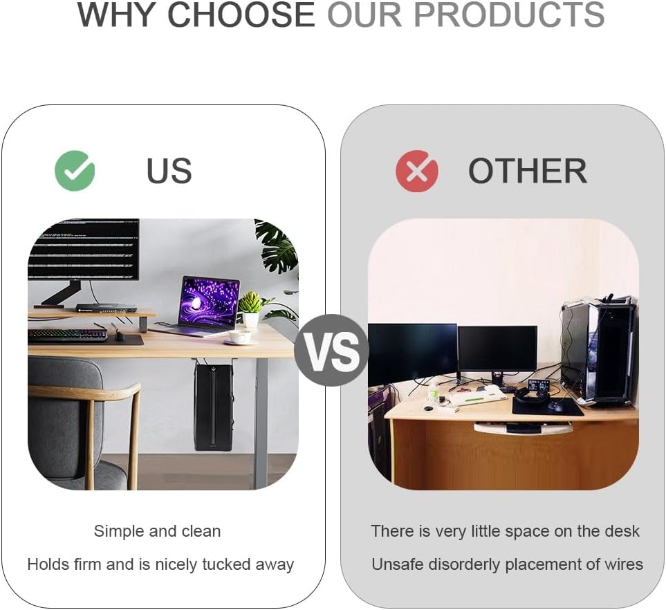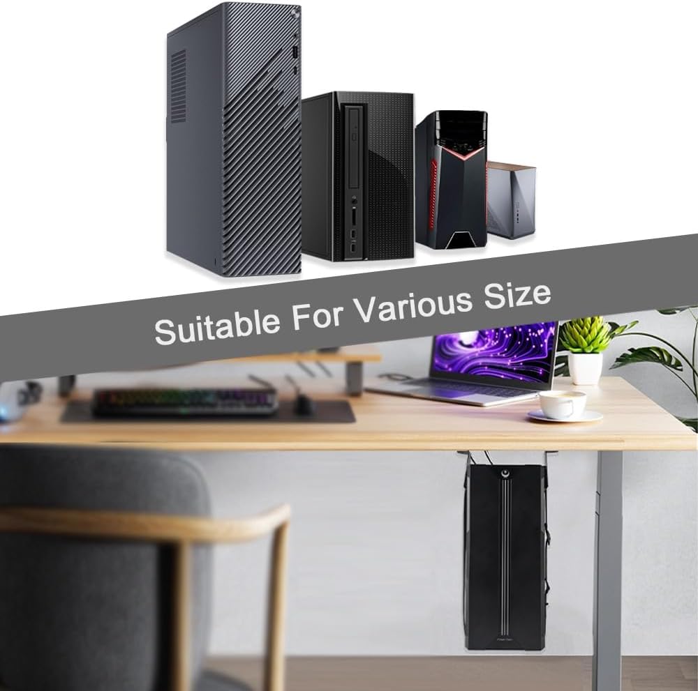 قم بتحرير مساحة العمل الخاصة بك: يمكن لدعامة وحدة المعالجة المركزية الاقتصادية هذه تأمين وحدة المعالجة المركزية الخاصة بك بقوة تحت الطاولة، مما يوفر مساحة أكبر لسطح المكتب الخاص بك لإنشائه والحفاظ عليه نظيفًا ومرتبًا.