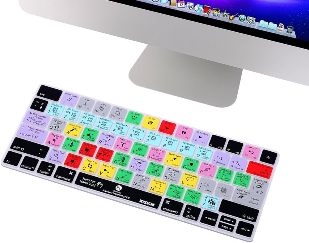 اكس اس كيه ان غطاء حماية من السيليكون بتصميم اختصار لكيبورد ابل ماجيك من ادوبي فوتوشوب بتصميم الولايات المتحدة والاتحاد الاوروبي (MLA22LL/A) (MLA22B/A)
