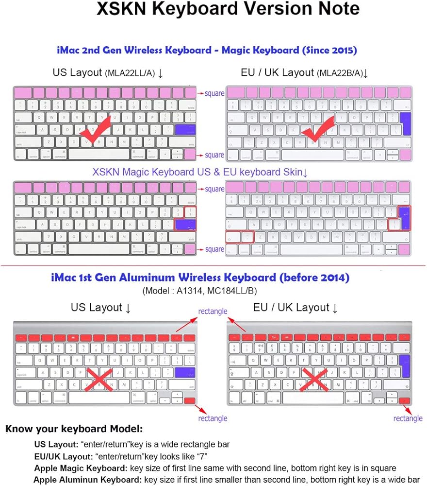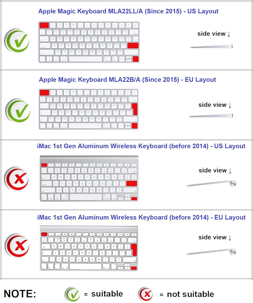 غطاء كيبورد جديد تمامًا بنسبة 100% من السيليكون لكل من إصدار الولايات المتحدة والاتحاد الأوروبي لوحة المفاتيح السحرية (إصدار 2015، المفتاح السفلي الأيمن مربع)