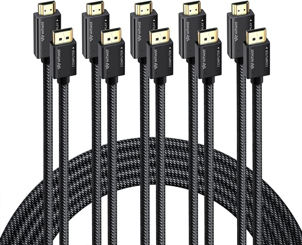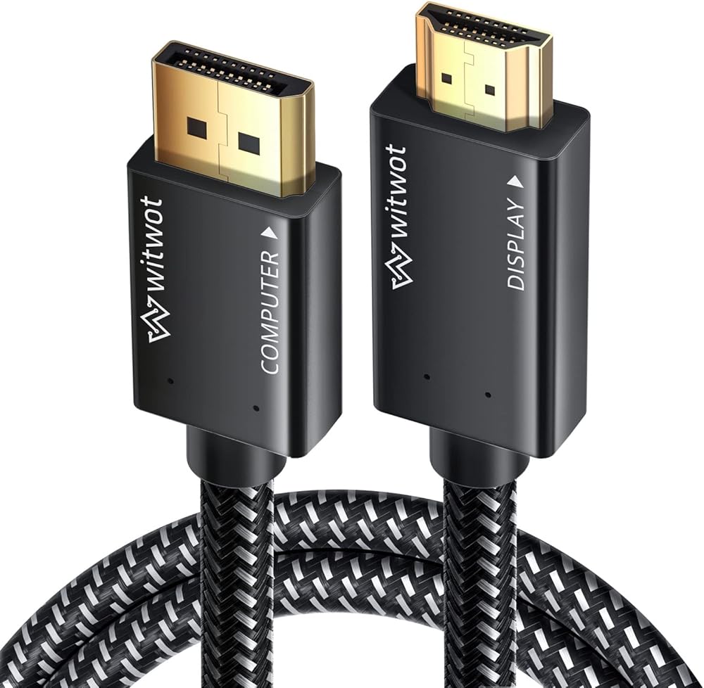 جودة فاخرة: يقوم منفذ العرض WitWot أحادي الاتجاه المتميز 4K UHD بطول 6 أقدام بكابل HDMI بتوصيل سطح المكتب أو الكمبيوتر المحمول بمنفذ DisplayPort (DP، DisplayPort++، DP++) بشاشة عرض أو شاشة عرض أو جهاز عرض أو تلفزيون أو HDTV مع HDMI مدخل. يتم استخدامه بشكل مثالي في مناسبات مختلفة بما في ذلك العمل من المنزل، أو الاستمتاع بالترفيه المنزلي، أو الألعاب، أو تقديم عرض عمل، أو توسيع مساحة العمل الخاصة بك لزيادة الإنتاجية